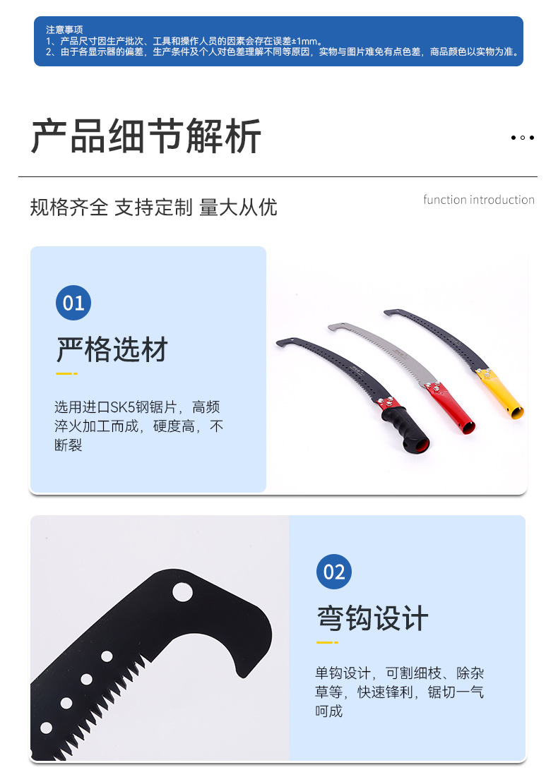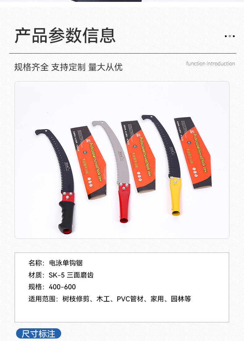 メーカー卸売電気泳動シングルフックソーSK5鋼鋸多機能ハンド鋸高枝鋸家庭用ウエスト鋸フック付き鋸