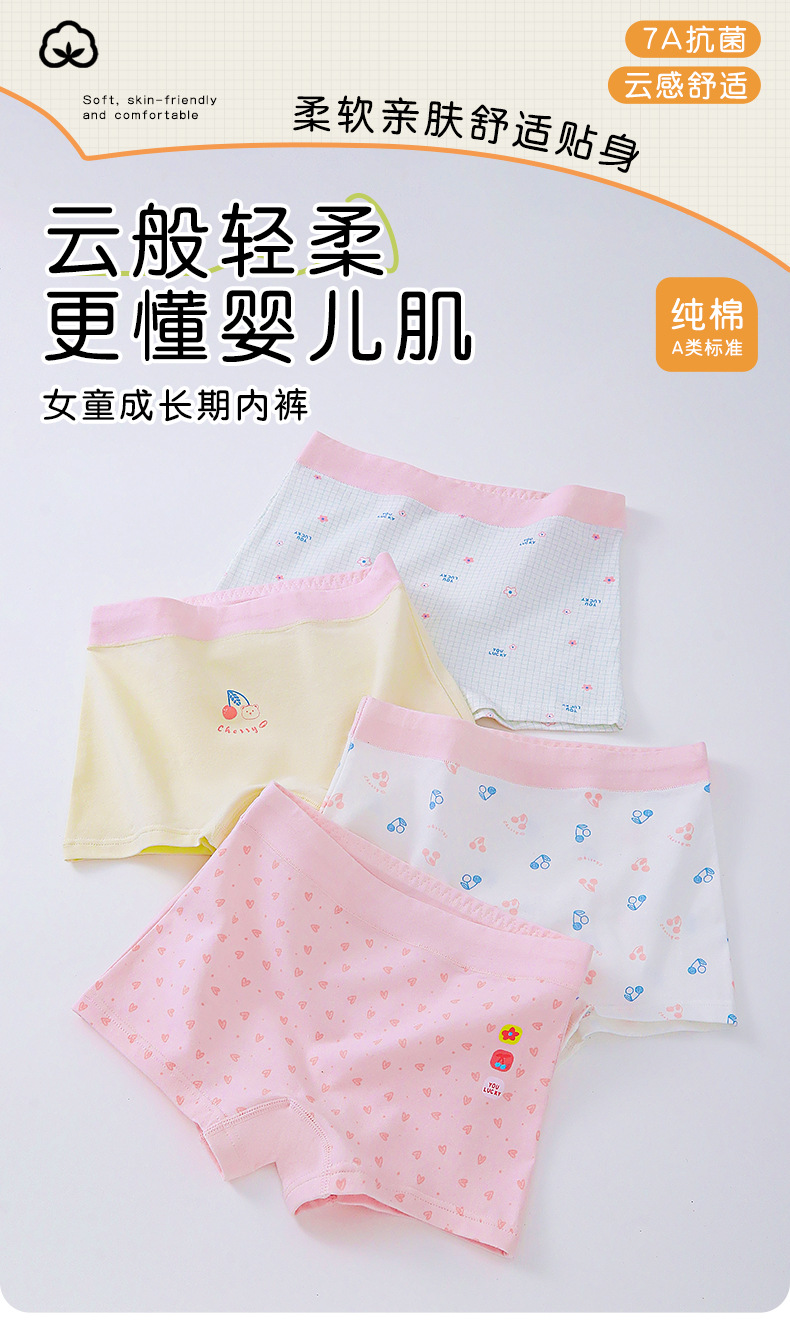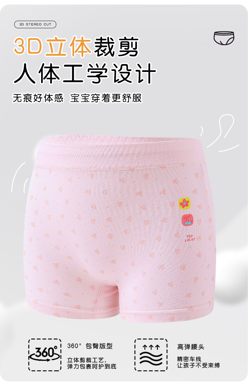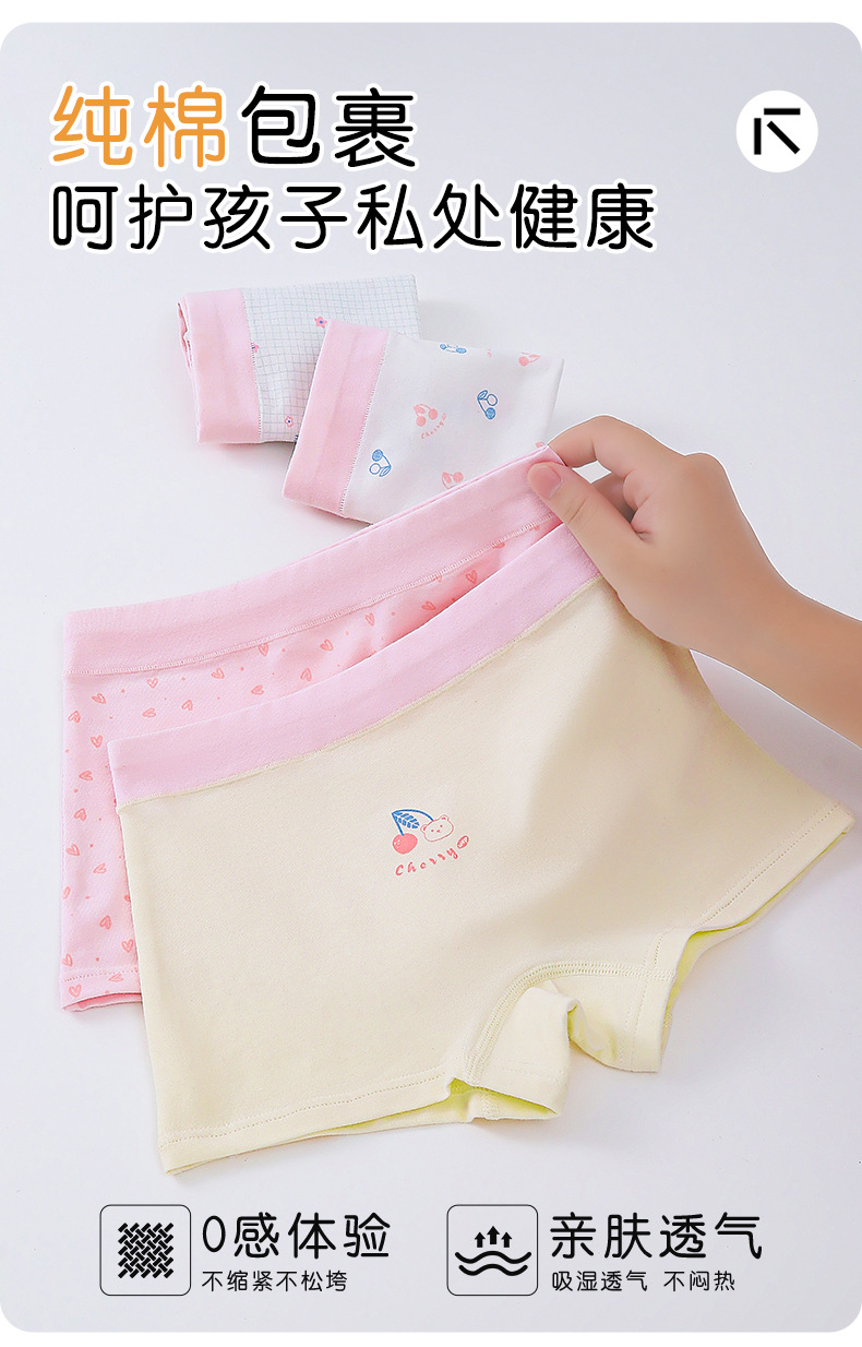 子供用下着の女の子の四角いズボンの純綿の抗菌女宝の女の子の平角の半ズボンのA類の綿はお尻を挟みません。