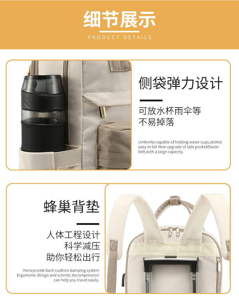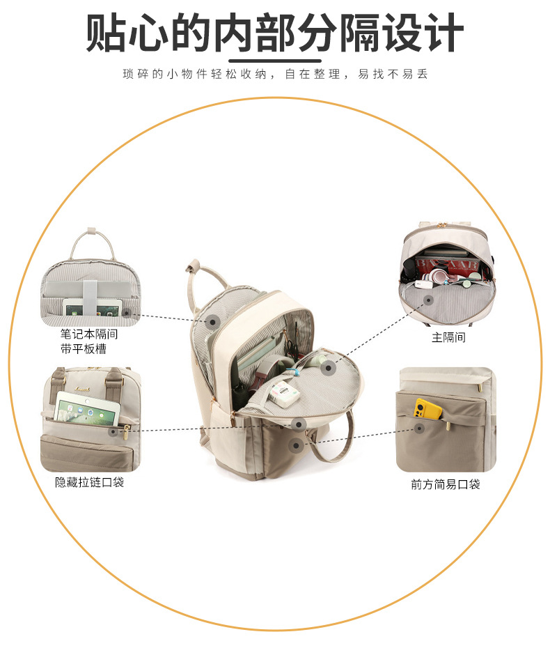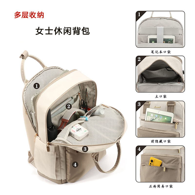 クロスボーダーカジュアルレディースリュックサック高级感大容量多机能収纳防水マルチシーンパソコンリュック