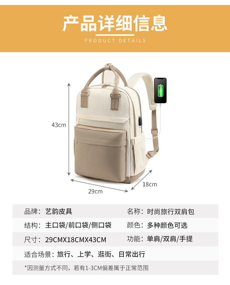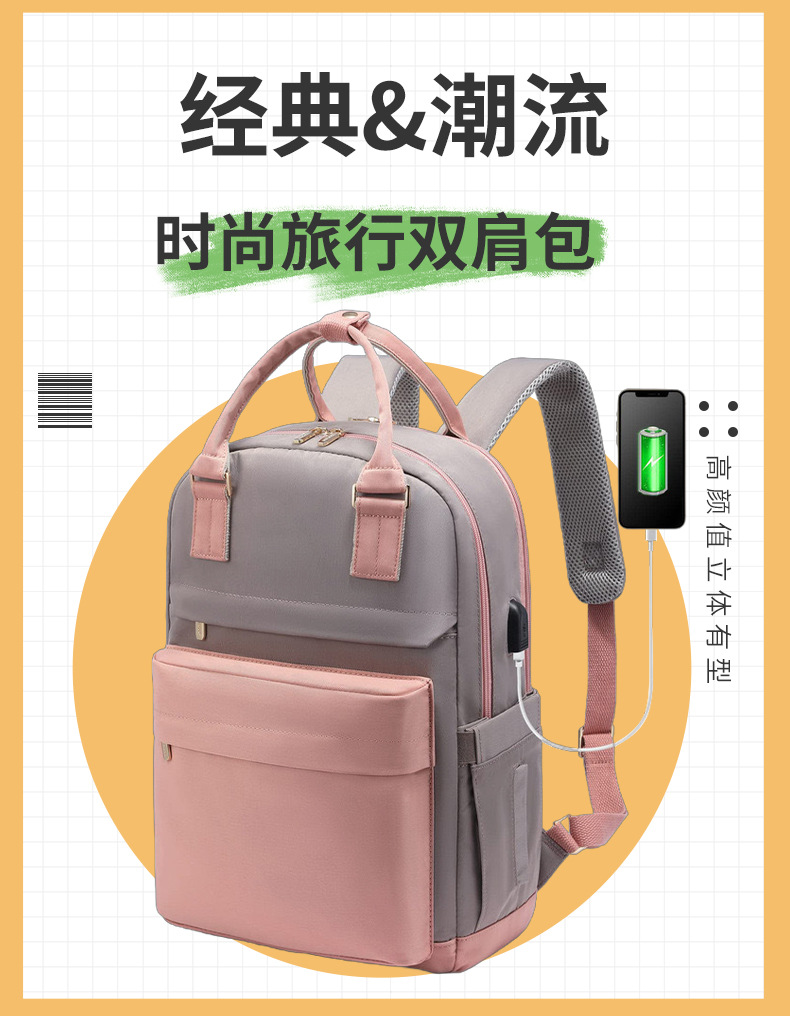 跨境新款女式时尚双肩包大容量书包休闲手提旅行包笔记本电脑背包