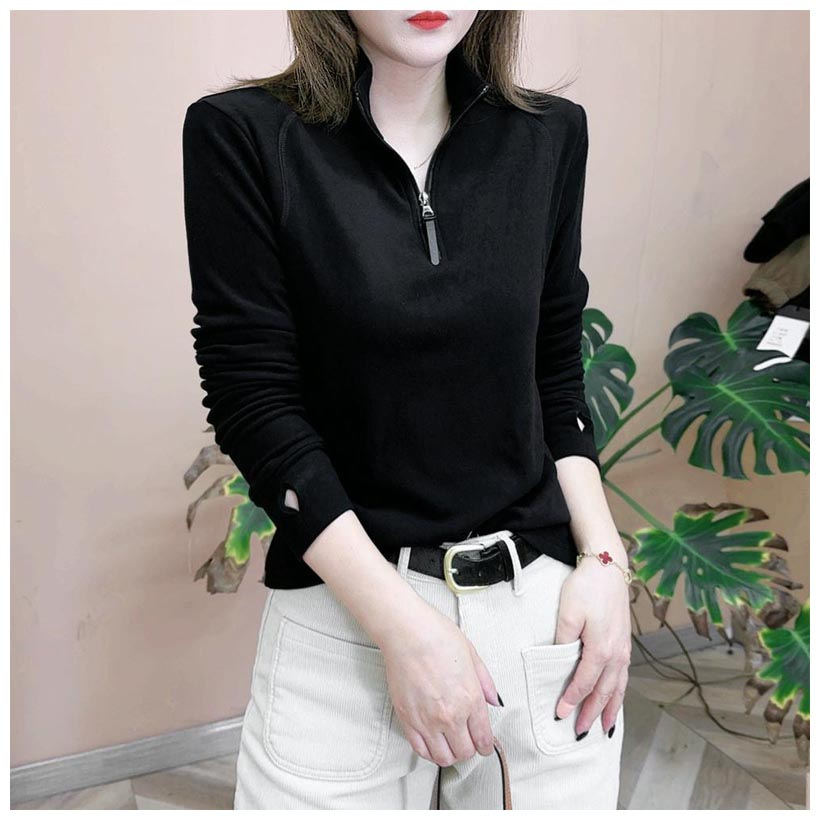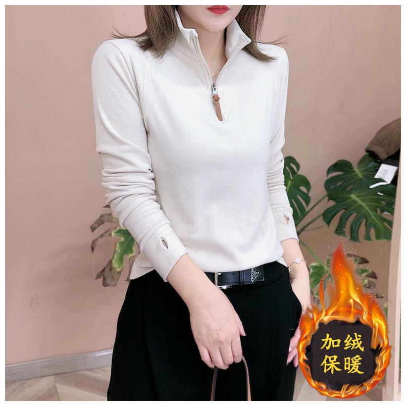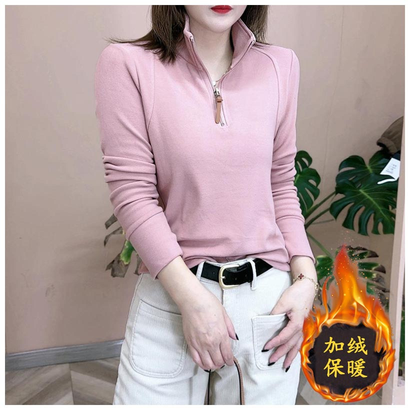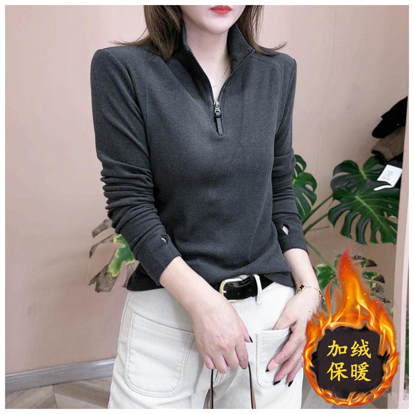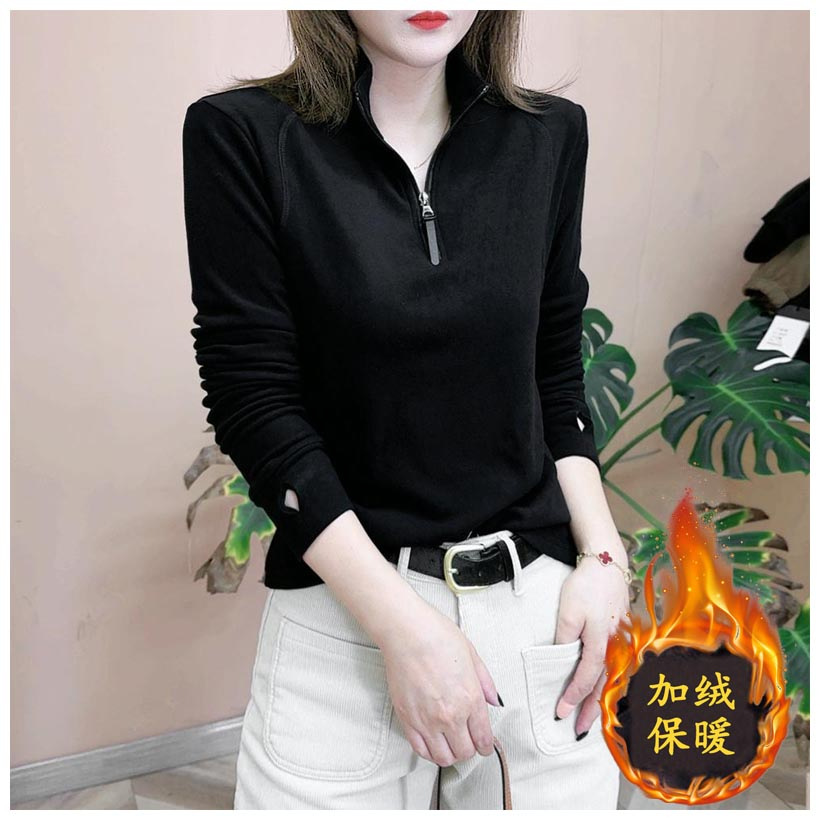 280gねじ徳絨立襟徳絨底シャツ女性秋冬ガードルファスナーとベルベットの中に上着の長袖tシャツをつけた