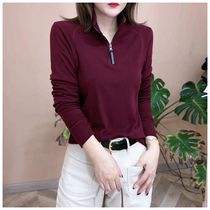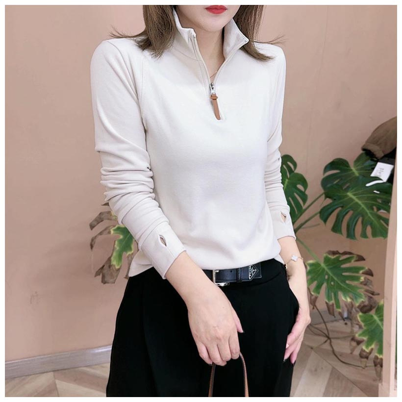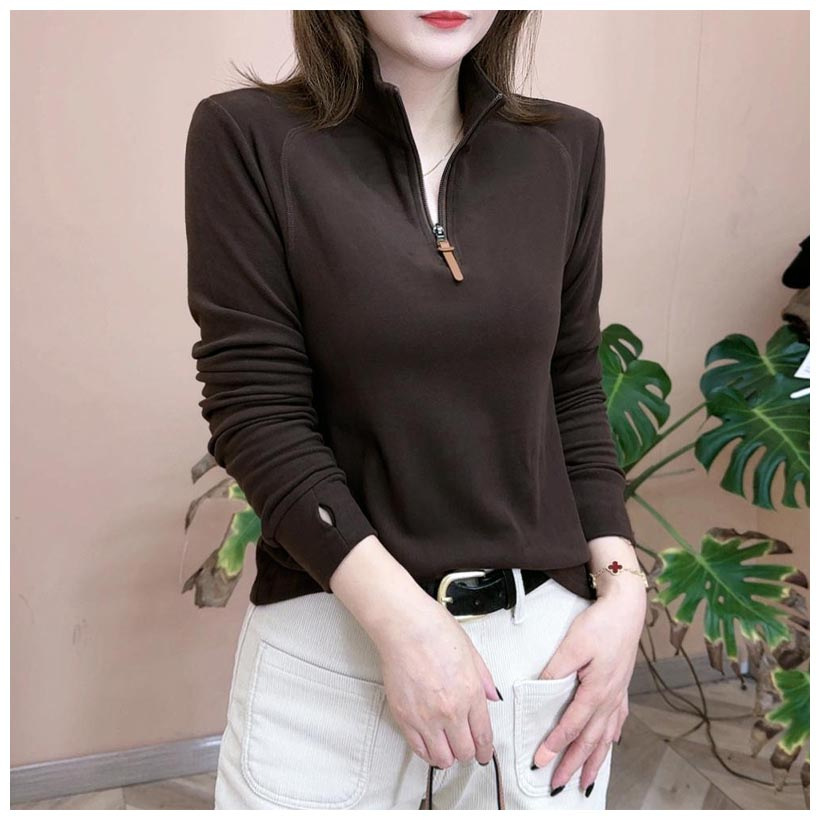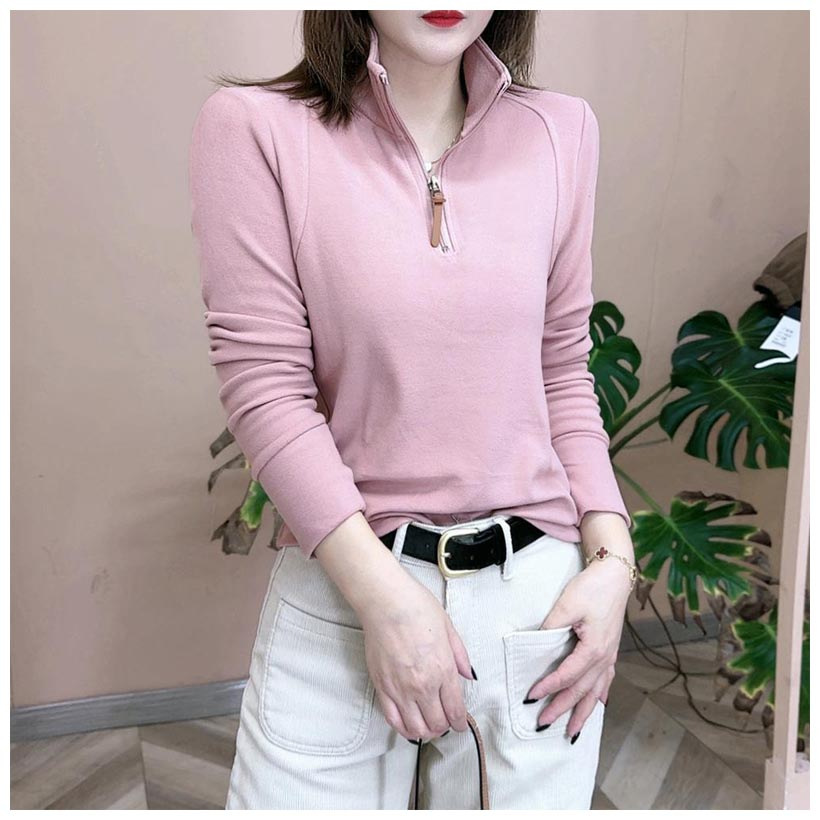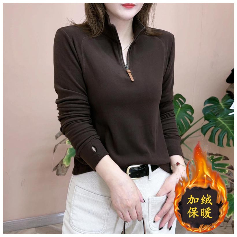 280gねじ徳絨立襟徳絨底シャツ女性秋冬ガードルファスナーとベルベットの中に上着の長袖tシャツをつけた