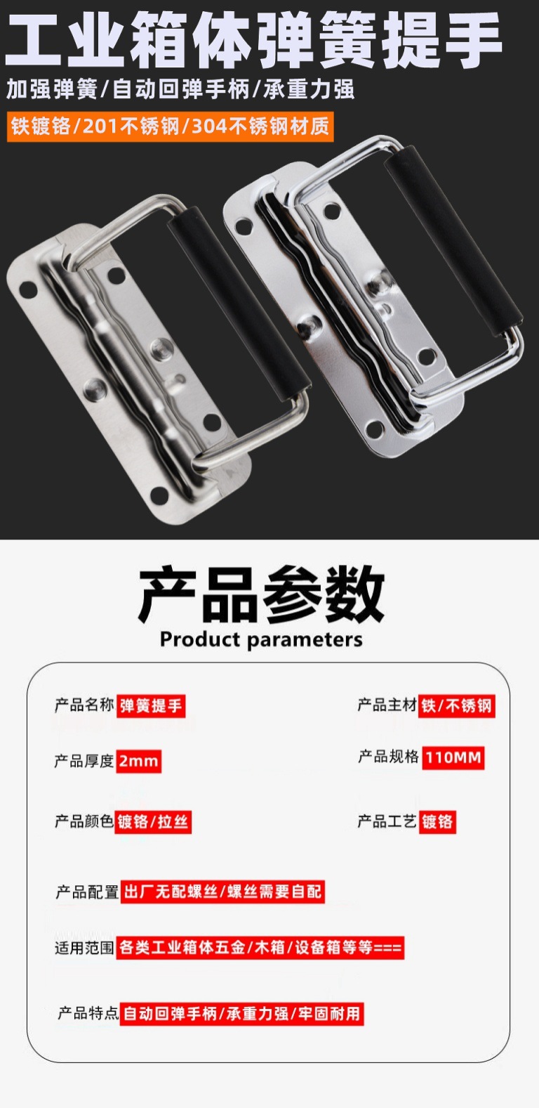 厚いステンレス折りたたみハンドルツールボックス可動ハンドル木箱リングハンドル工業設備箱スプリングハンドル