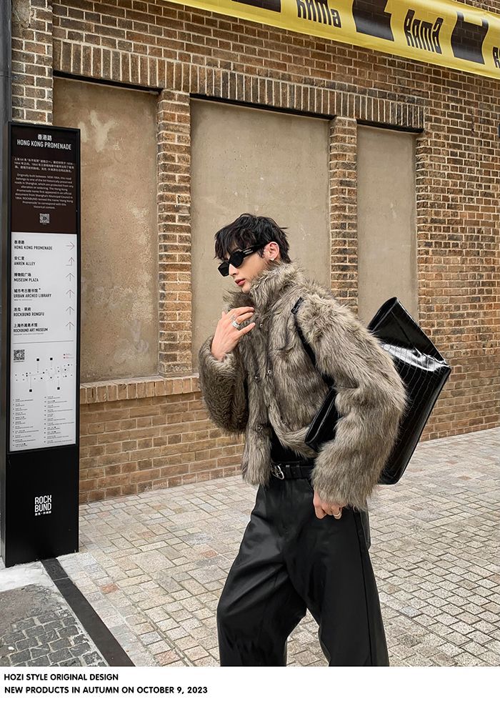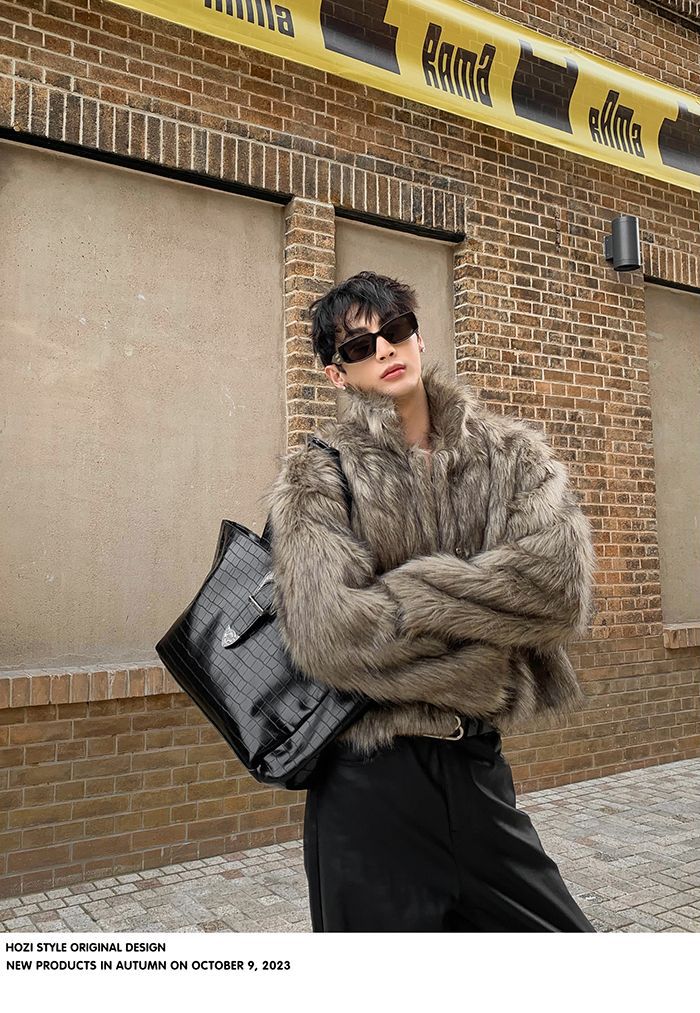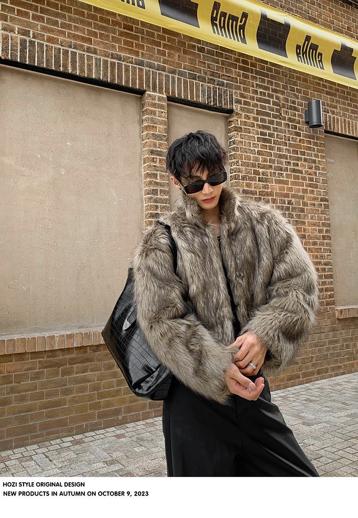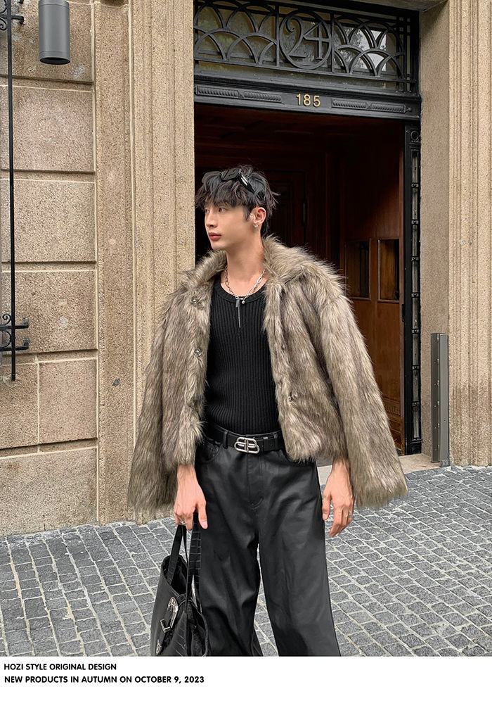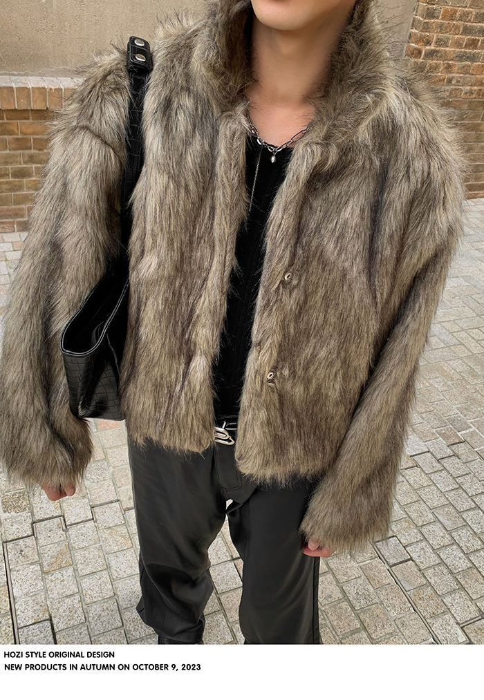 2025冬季新品男装连帽人造皮草夹克外套百搭加厚毛毛绒大衣