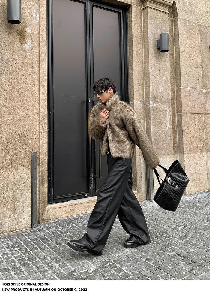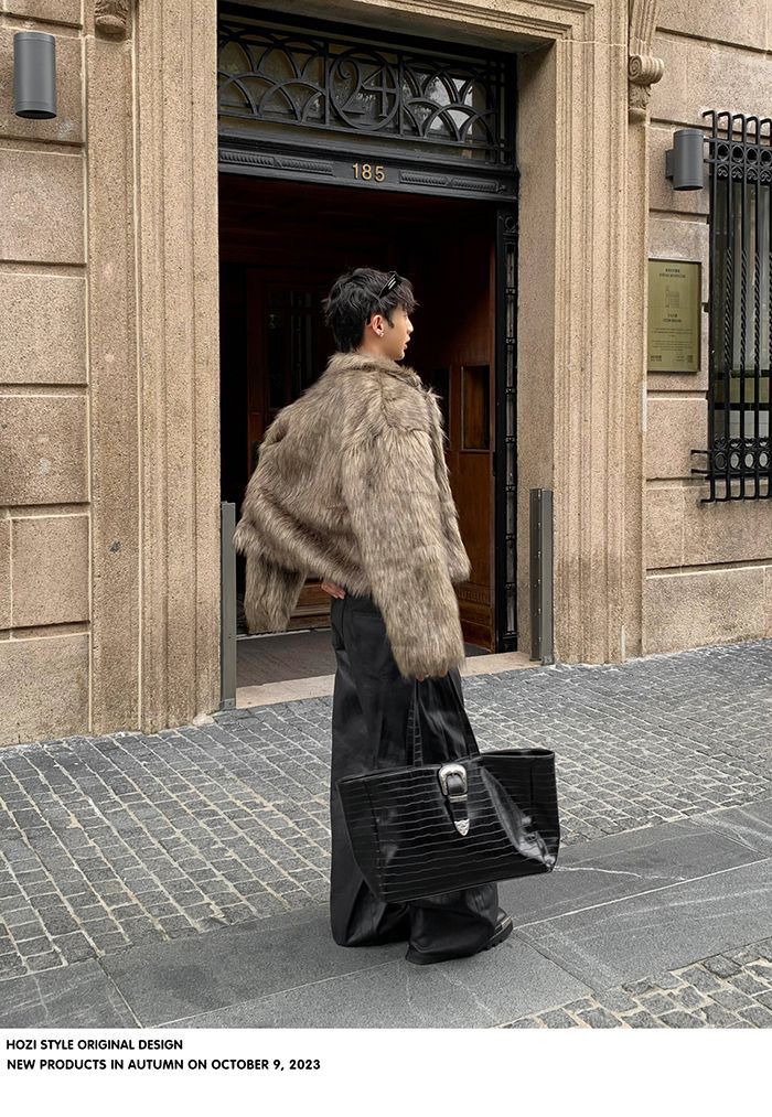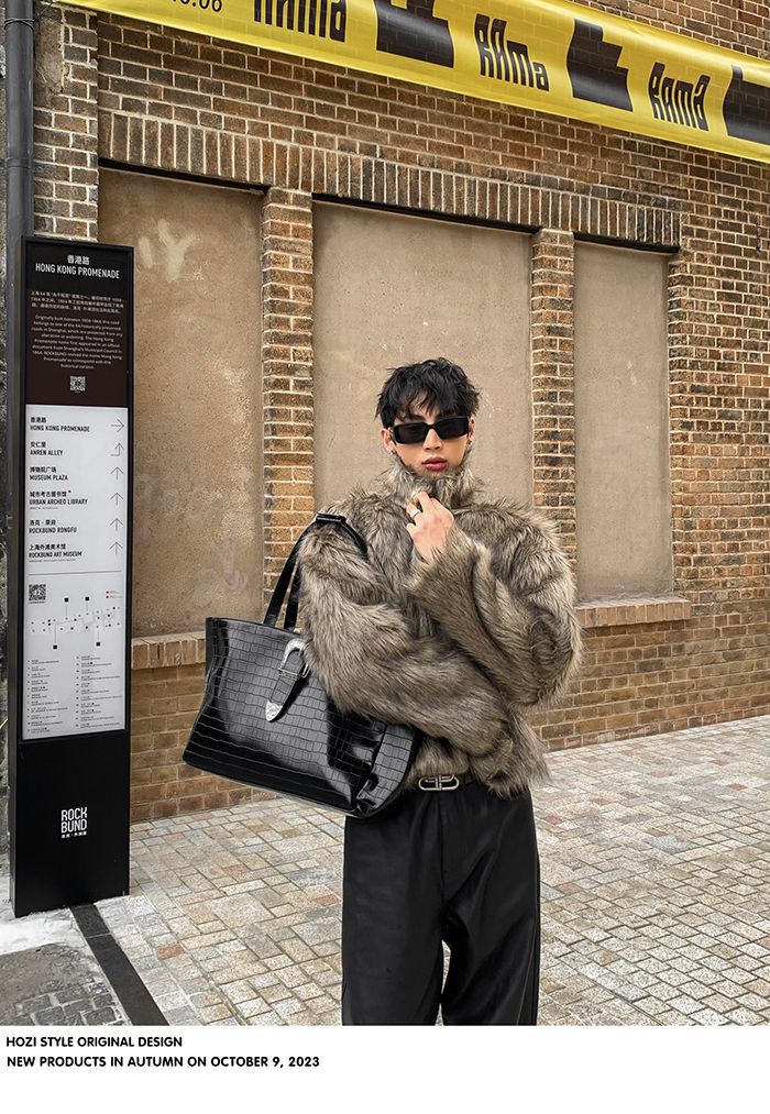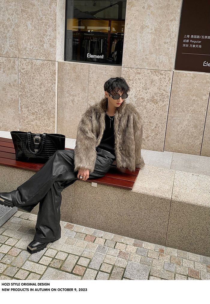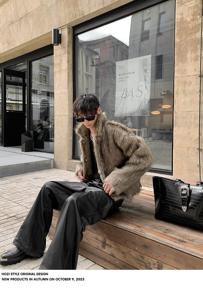 2025冬季新品男装连帽人造皮草夹克外套百搭加厚毛毛绒大衣