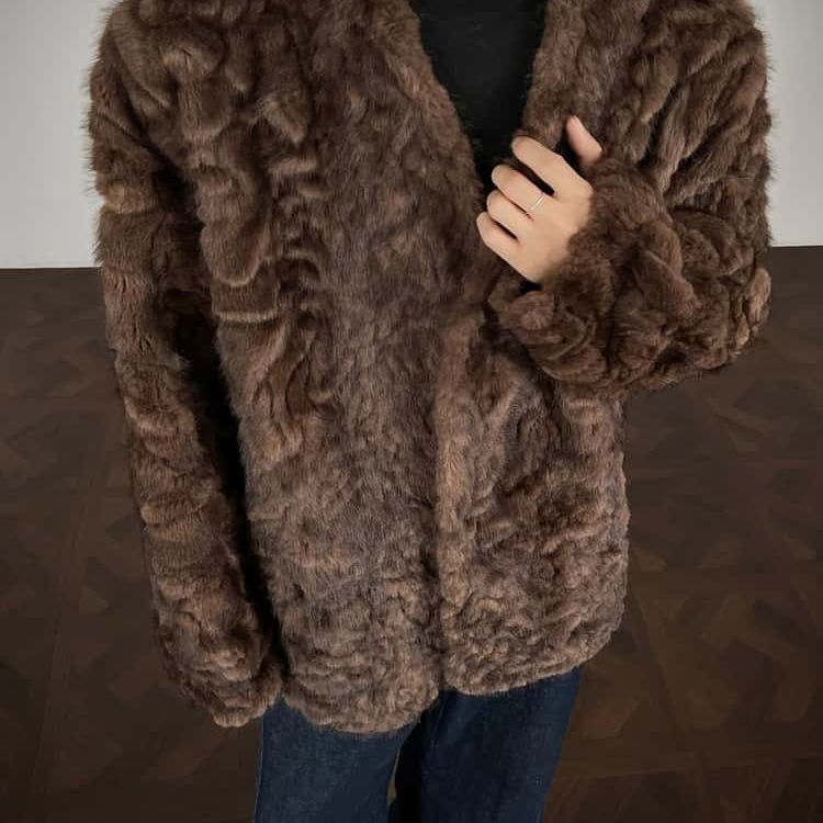 2025新款韩版毛毛绒加棉加厚抗寒保暖男士冬季外套潮流仿皮草大衣