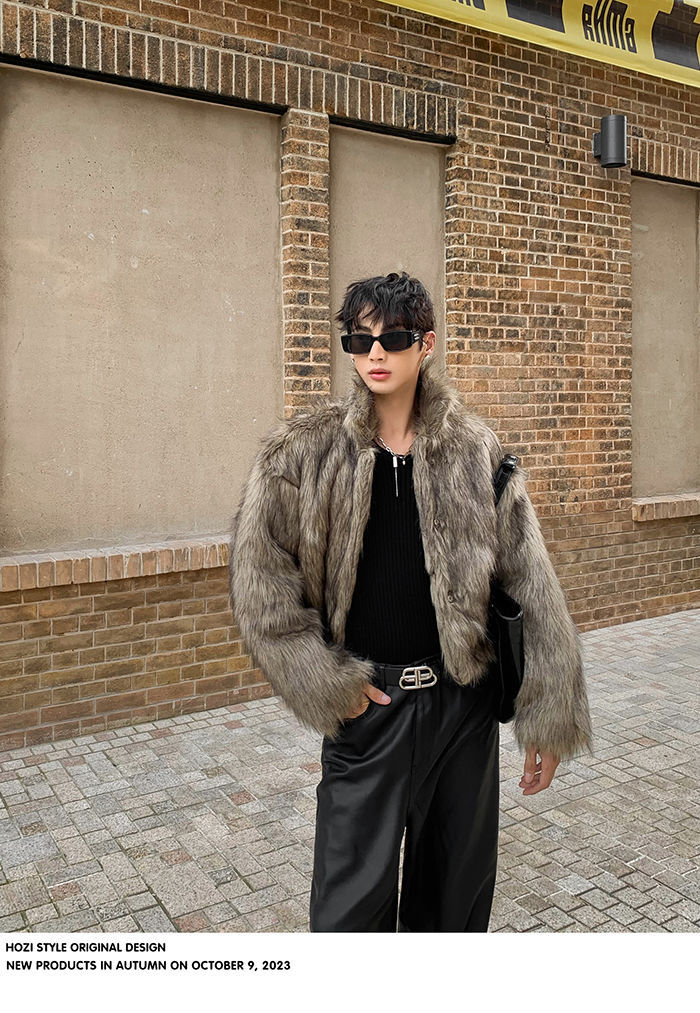 冬の美潮環境保護の毛皮のジャケットの男性のデザイン感の小さい大衆のごろつきのハンサムな揚げ物の毛羽のコートの2023新型の潮