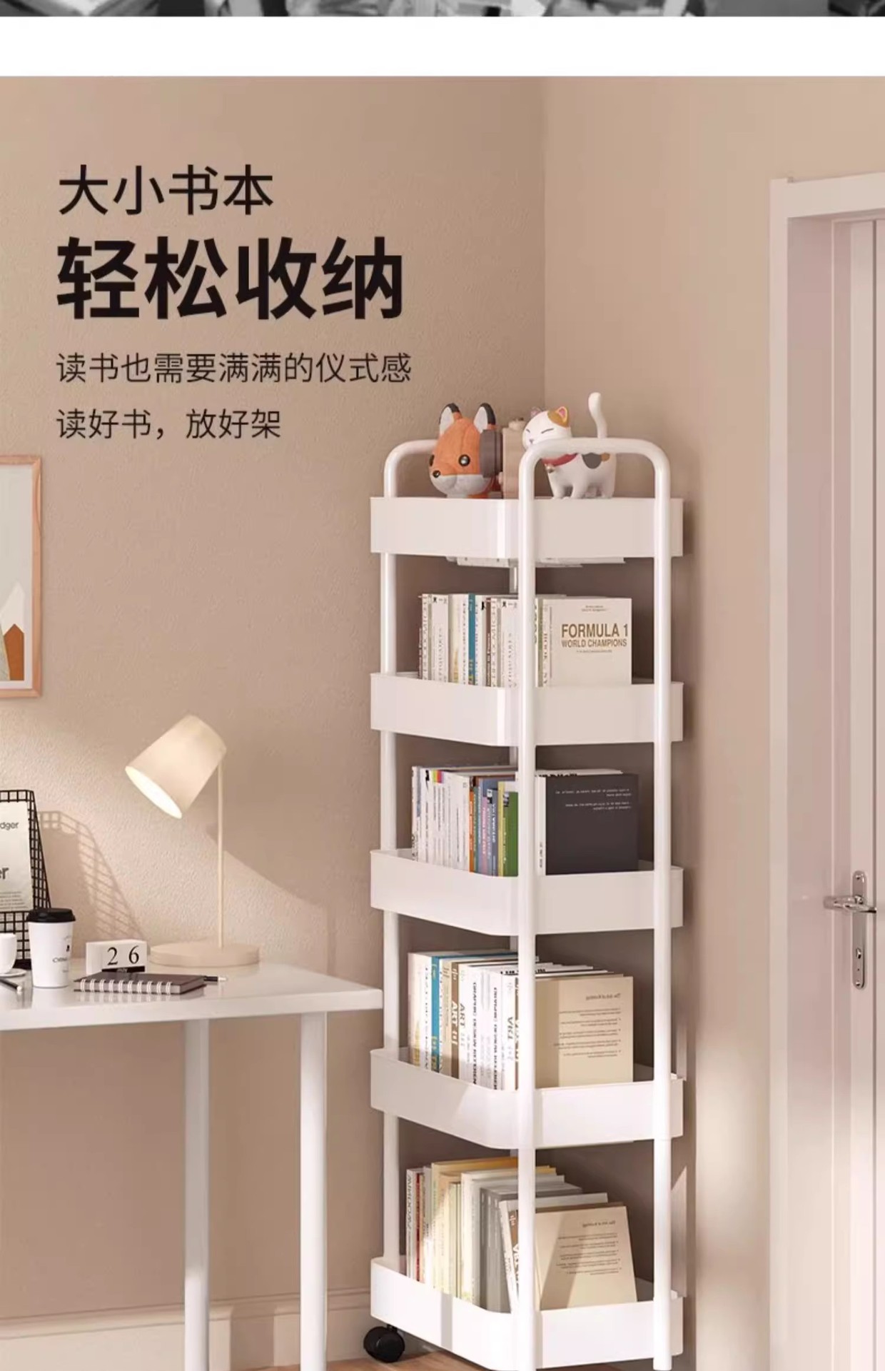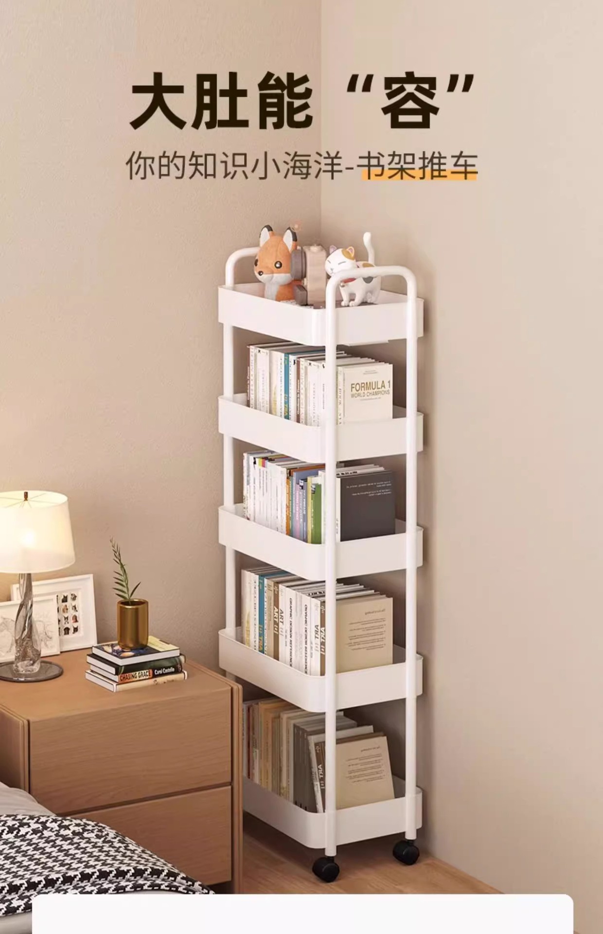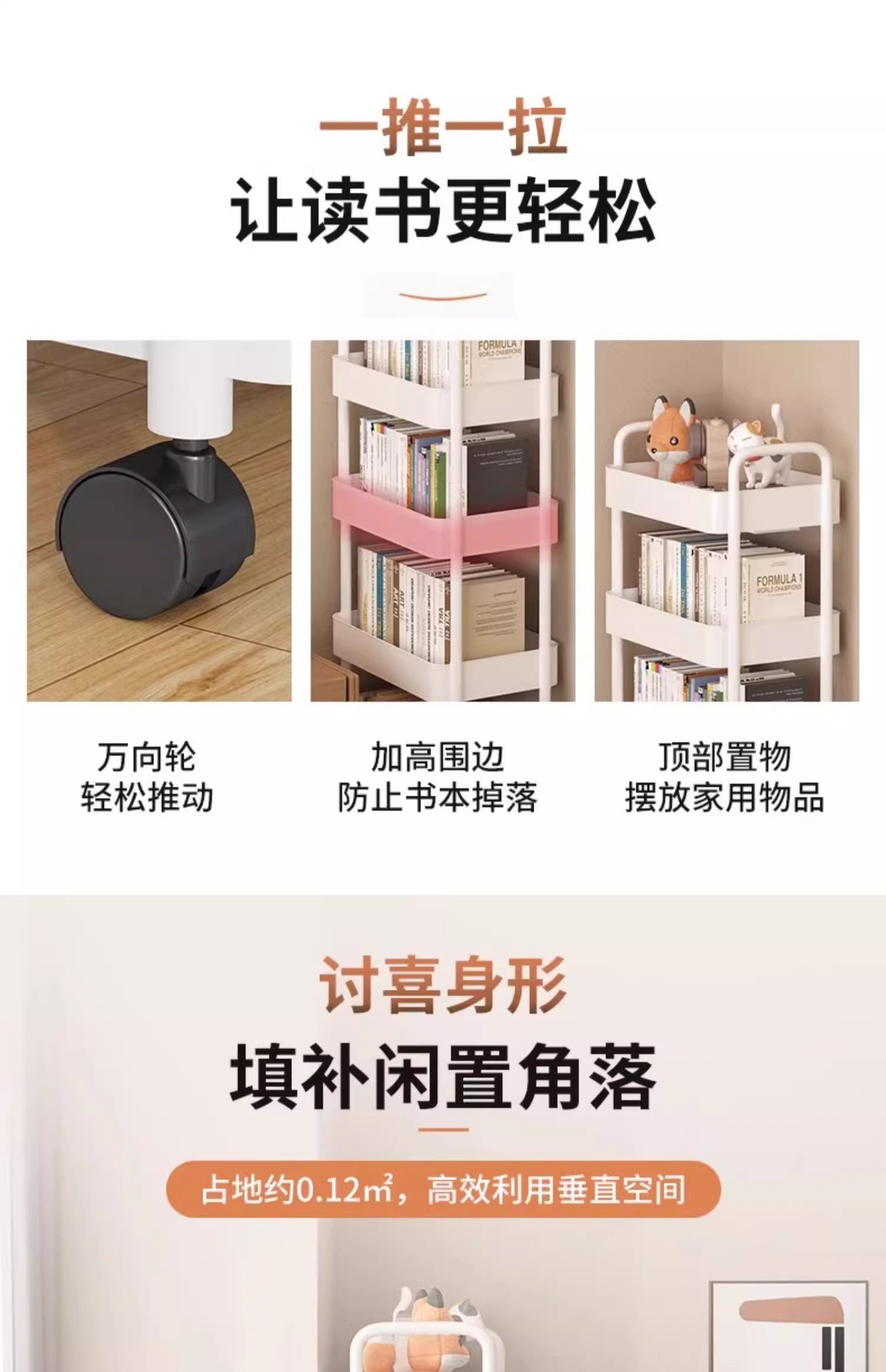 小推车置物架家用零食落地多层客厅卧室收纳书包架移动书架储物