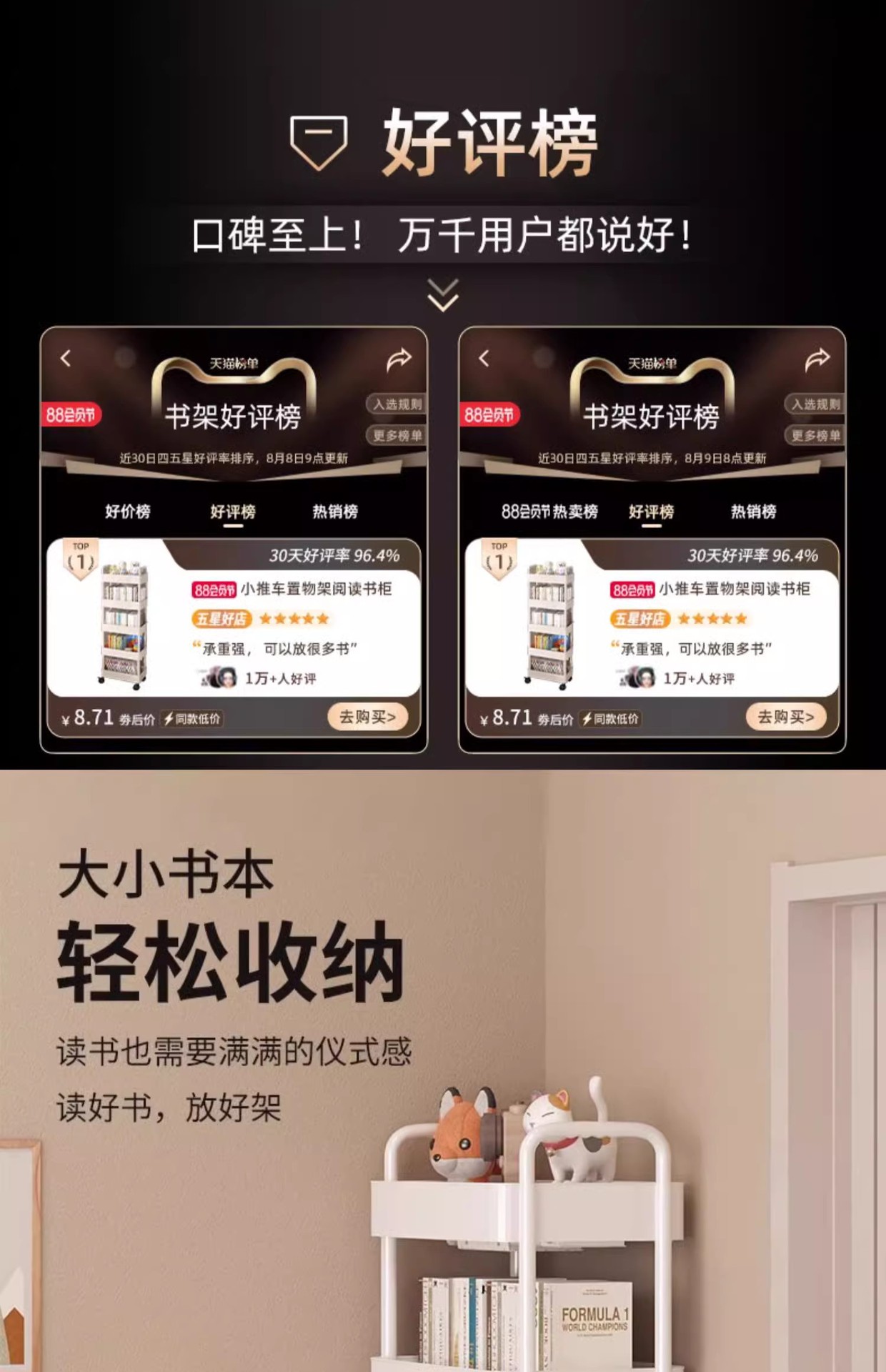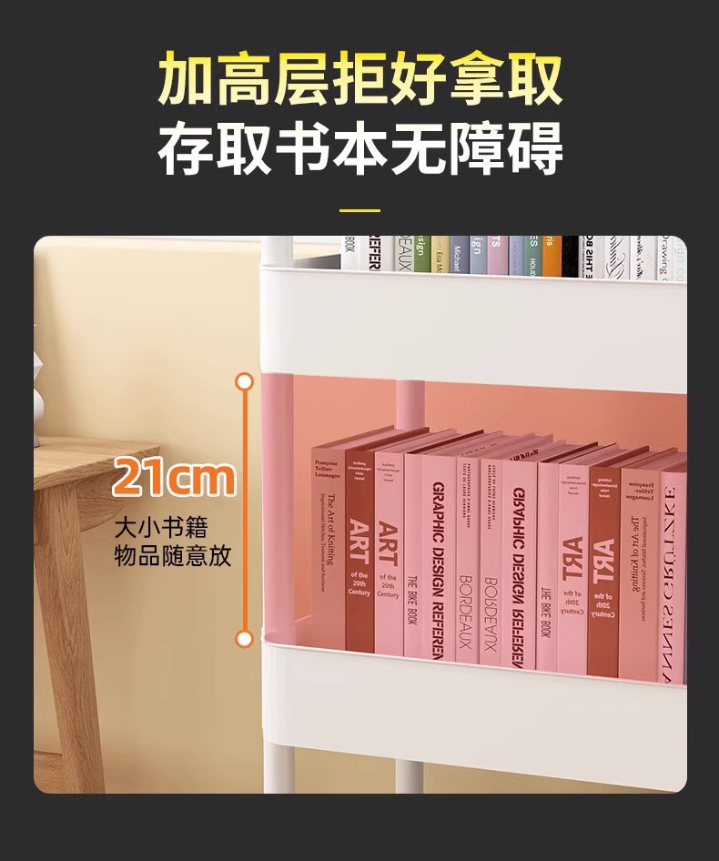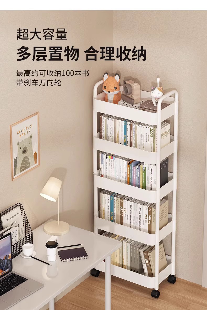 小推车置物架家用零食落地多层客厅卧室收纳书包架移动书架储物