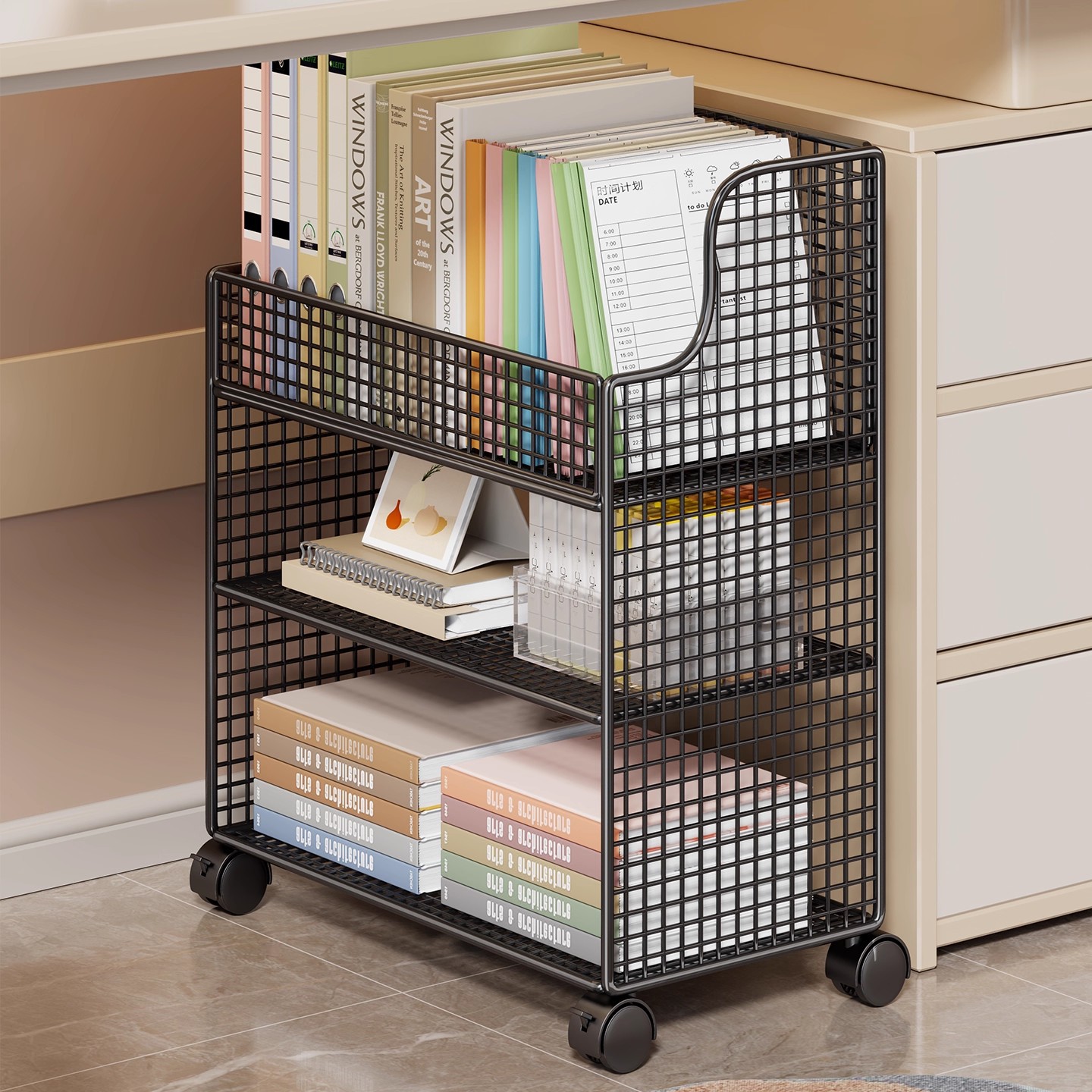 桌下书架小推车置物架可移动落地大容量学生课桌边带轮书本收纳架