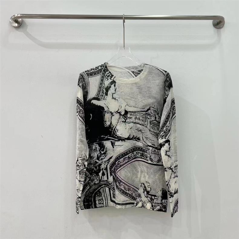 Oヨーロッパステーション2025初春の新しいファッション多用途ラウンドネックプリント水溶性日焼け止めボトリングシャツ女性用イントレンド