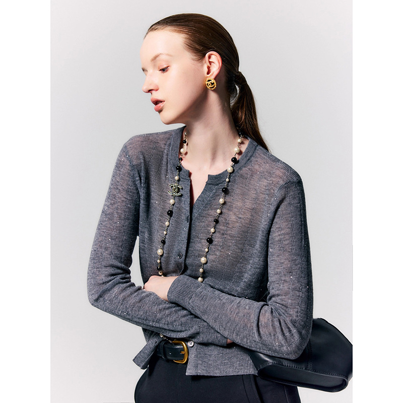 【碎影珠片开衫】超薄200S超细水溶羊毛针织开衫女100绵羊毛上衣