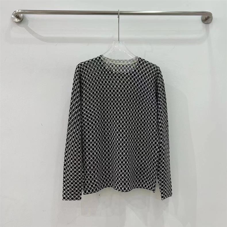 ヨーロッパ駅2024秋冬の新型丸首レースは純色の透かし編みの底のシャツをつなぎ合わせます。