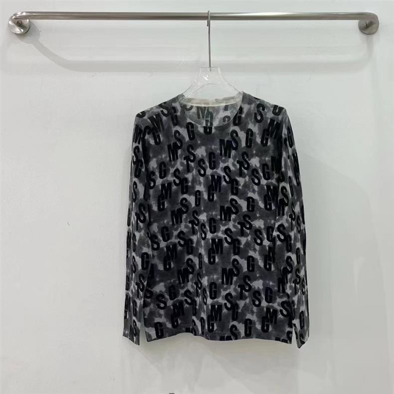 美しくて独立しています。O ~ 丸首の長袖は柔らかくて、プリントのニットの上着をレンダリングします。