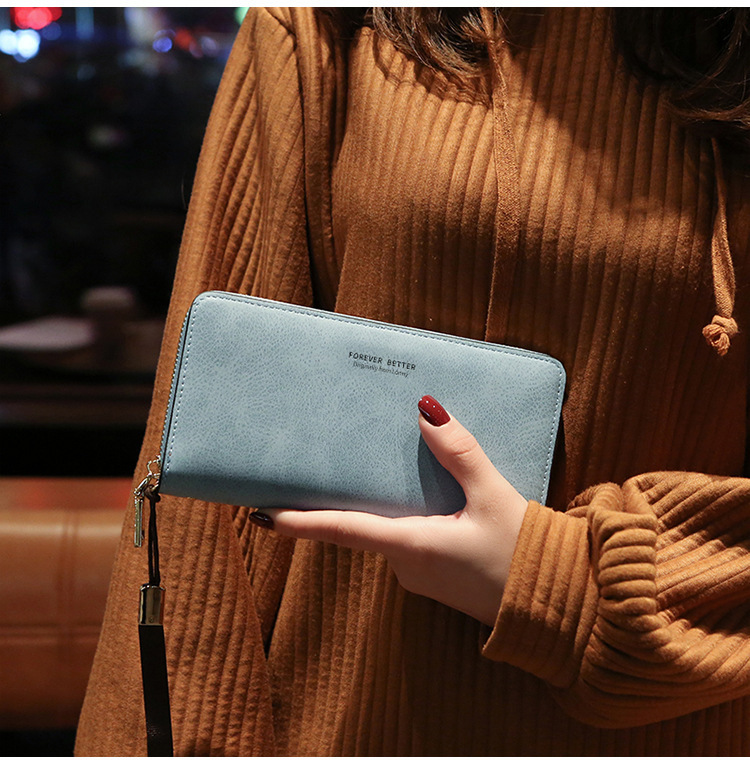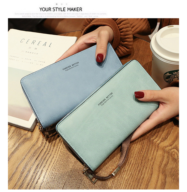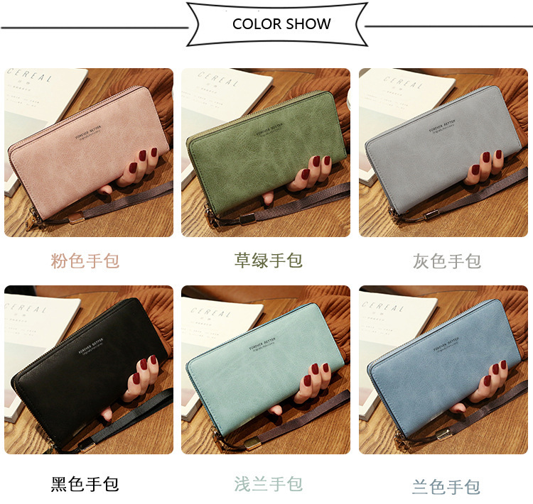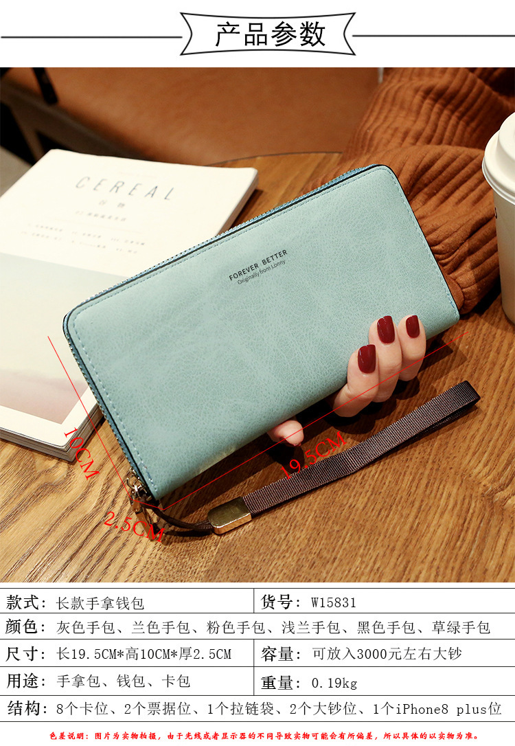 女士钱包 韩版长款纯色两折包超多卡位手拿包纯色零钱包批发