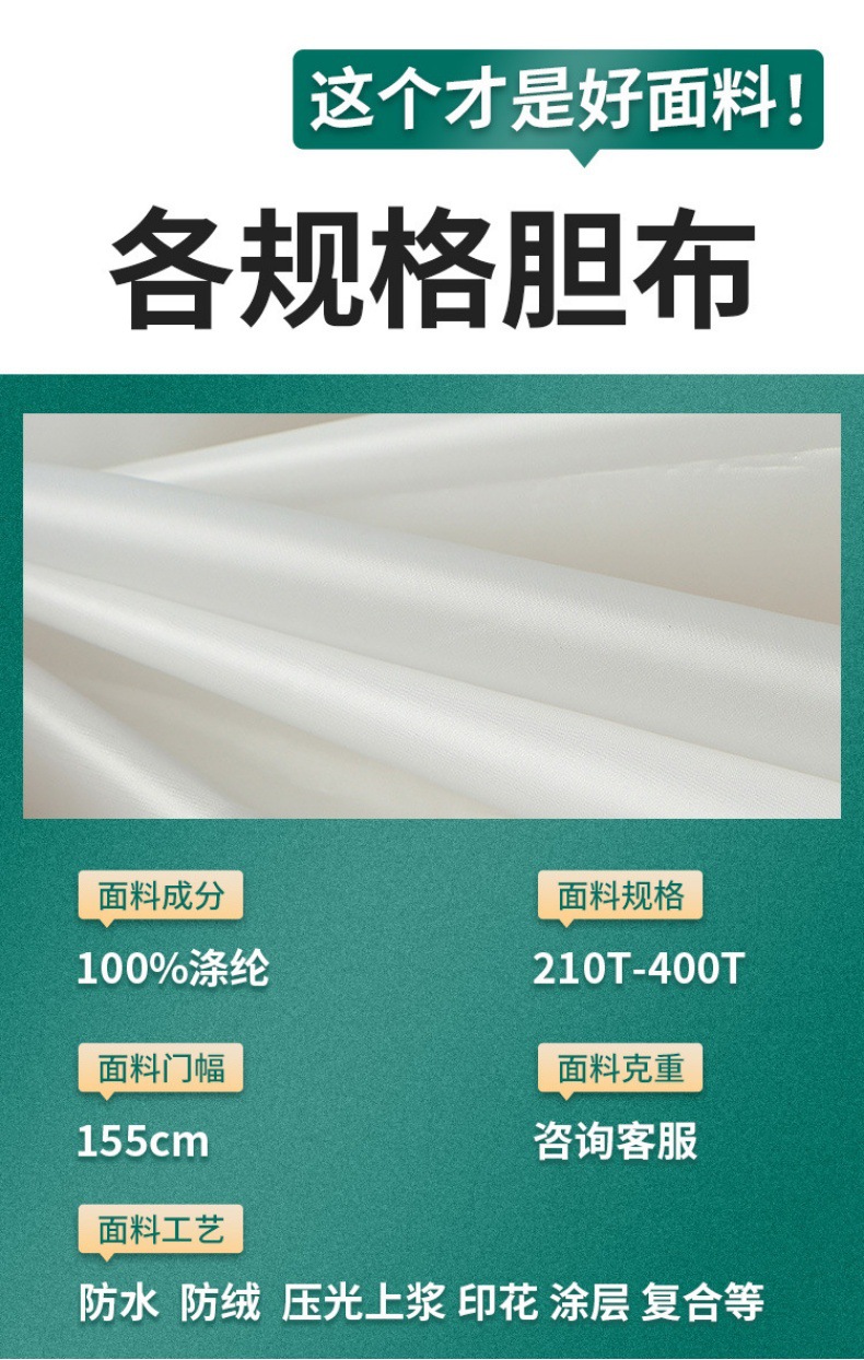 210-400防絨胆布ダウン内胆布防絨通性ダウンジャケット白胆綿服綿胆ソファーマット