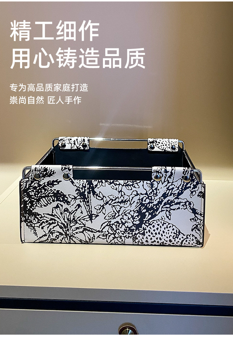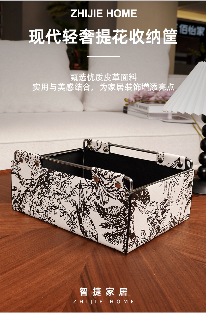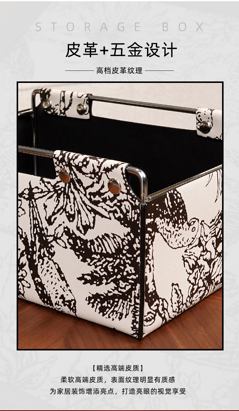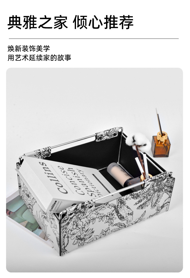 复古法式创意玄关柜收纳盒收纳筐框家居收纳皮革轻奢高级整理盒