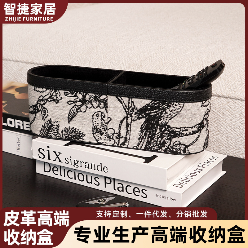 フランス式デスクトップ革収納ボックス高級感軽豪華リモコン筆筒収納雑物収納ボックス付き