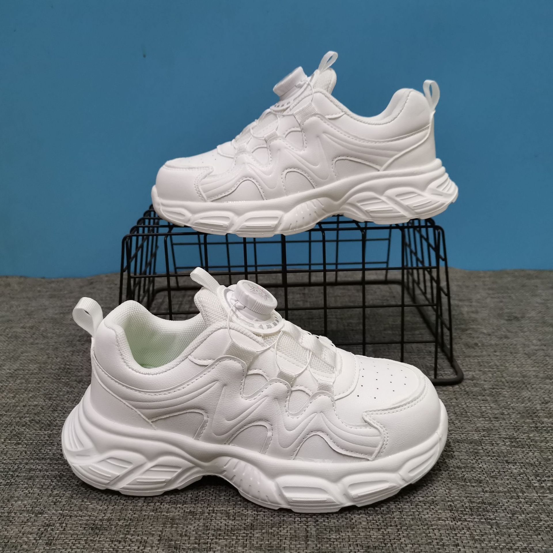 儿童小白皮面旋钮扣学生校园白色运动鞋32-37 尺码偏小