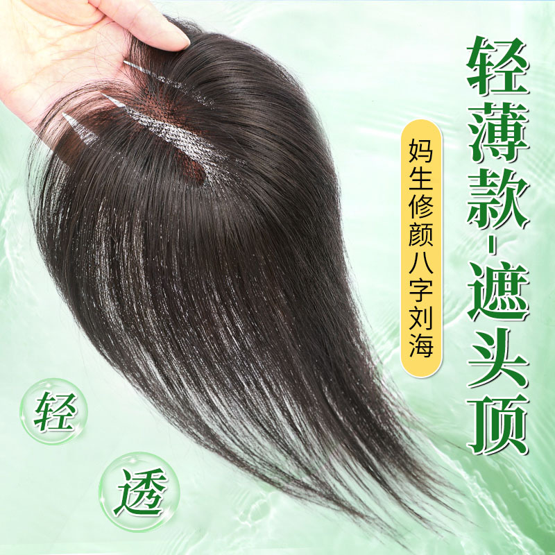 刘海假发女片头顶无痕补发遮白发自然前额蓬松高颅顶全真发假刘海