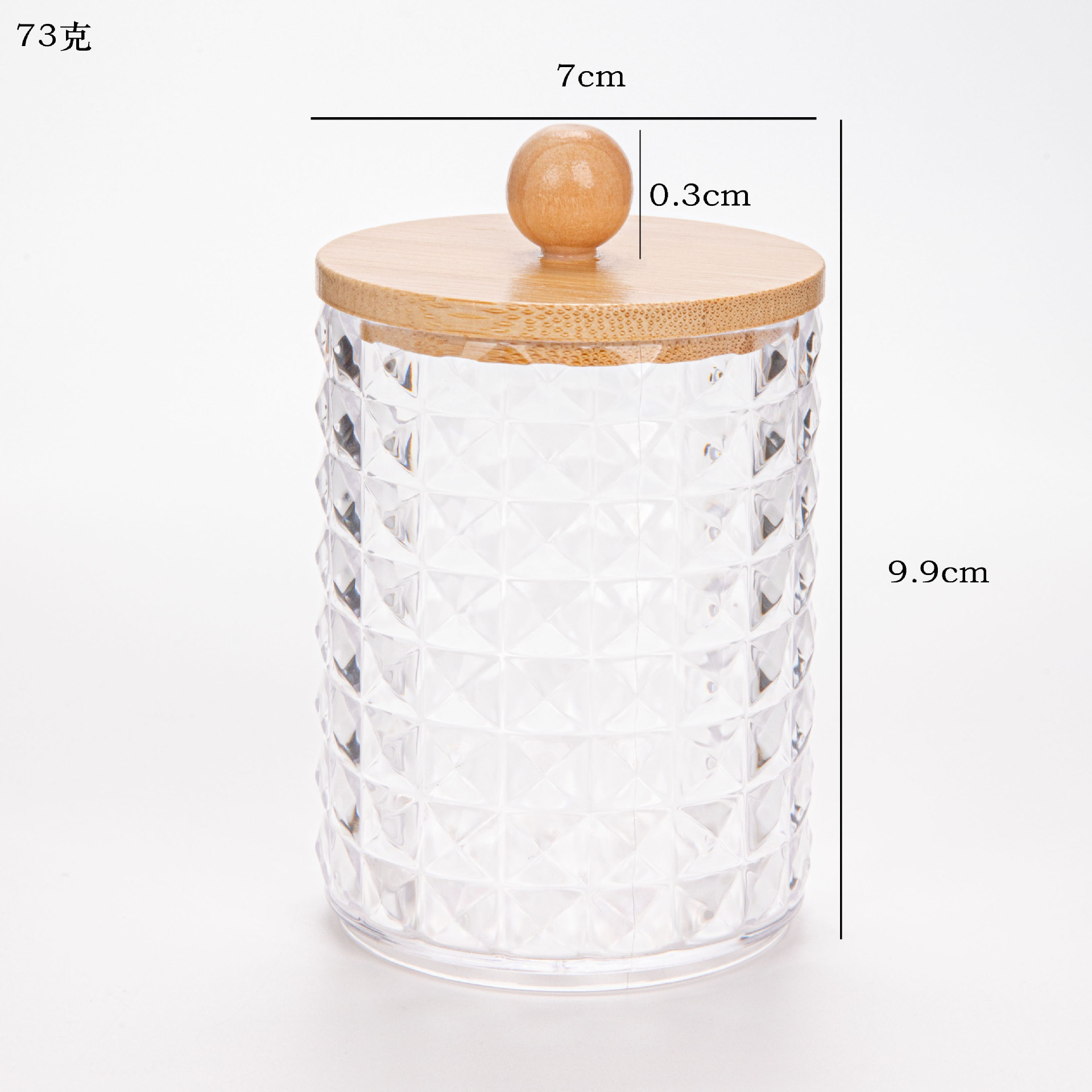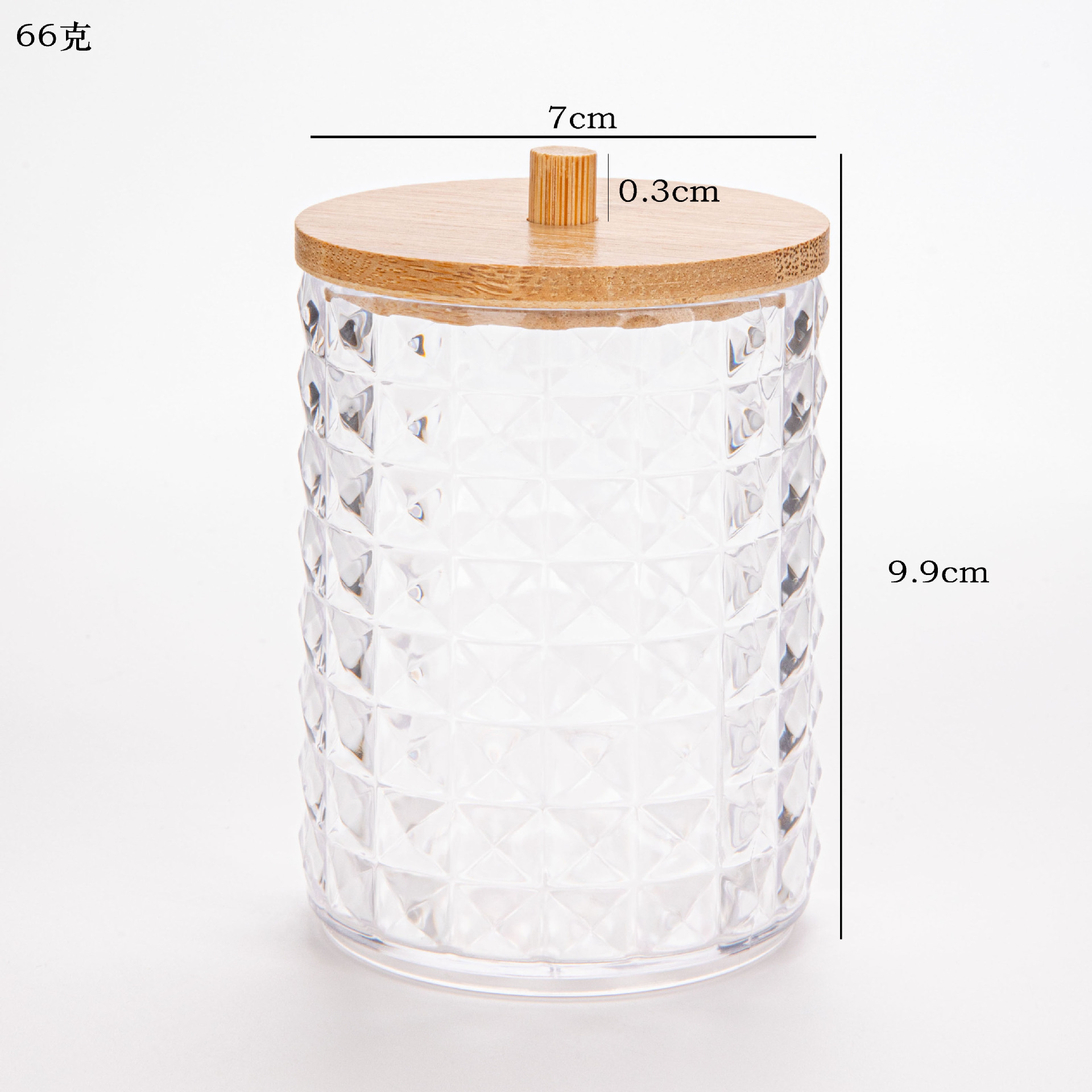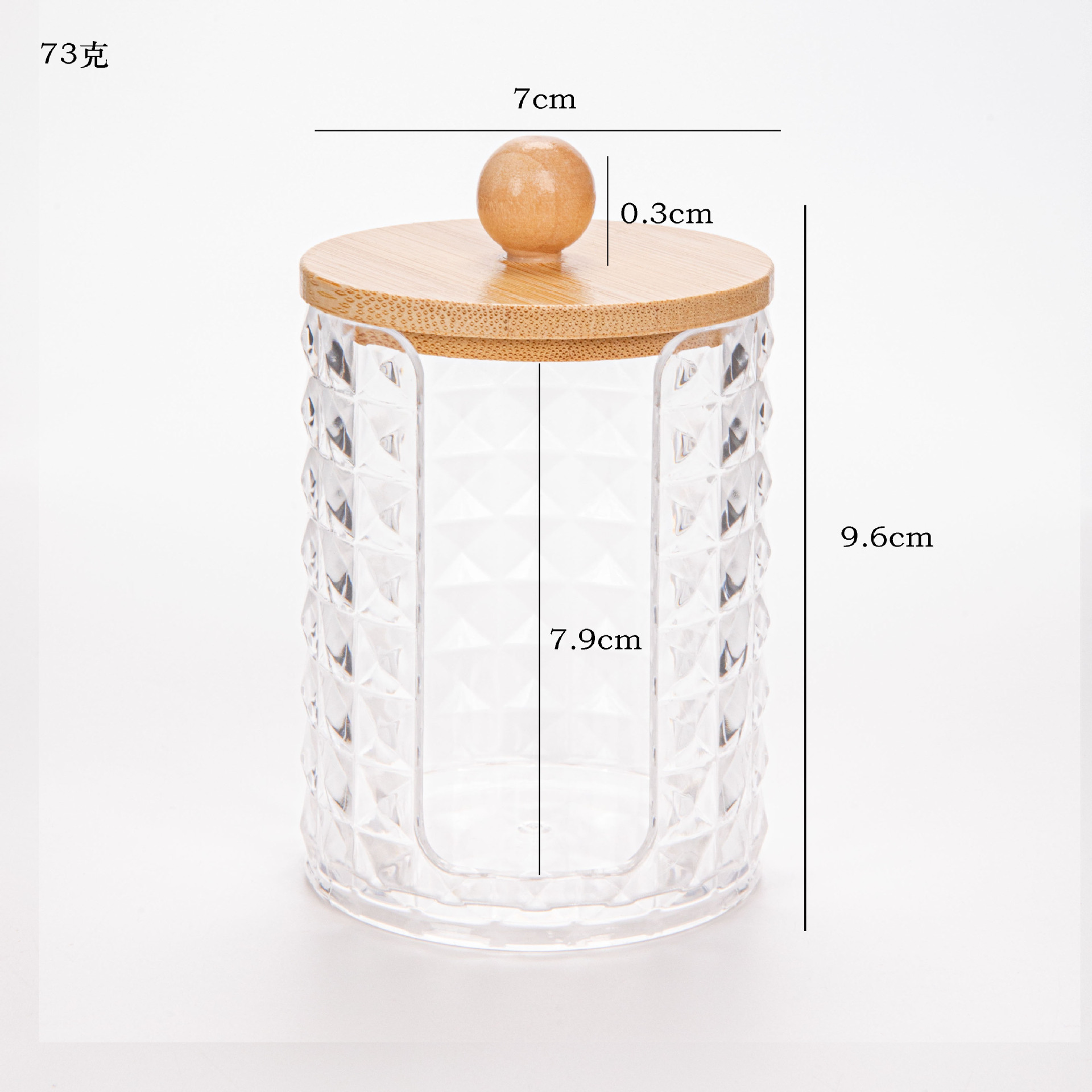 新品クリアダイヤ柄綿棒竹蓋PSポータブル丸型ロングコンビネーションコットン収納ケース