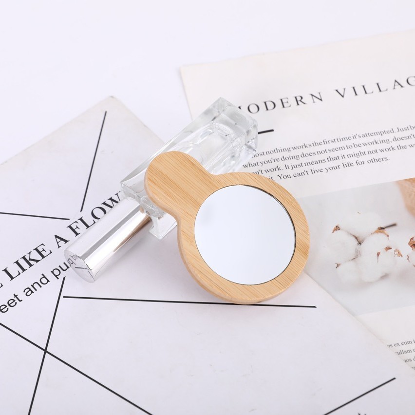カスタムメイドの携帯用竹製木製ミニ化粧鏡、小さな丸い鏡、刻印、模様、レーザー彫刻ロゴ入り