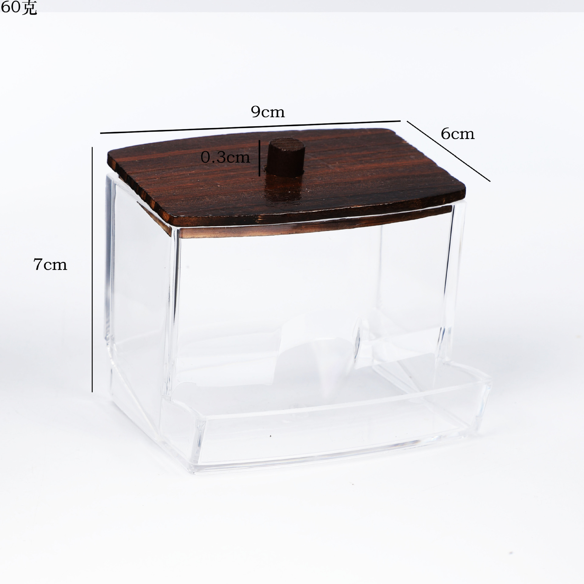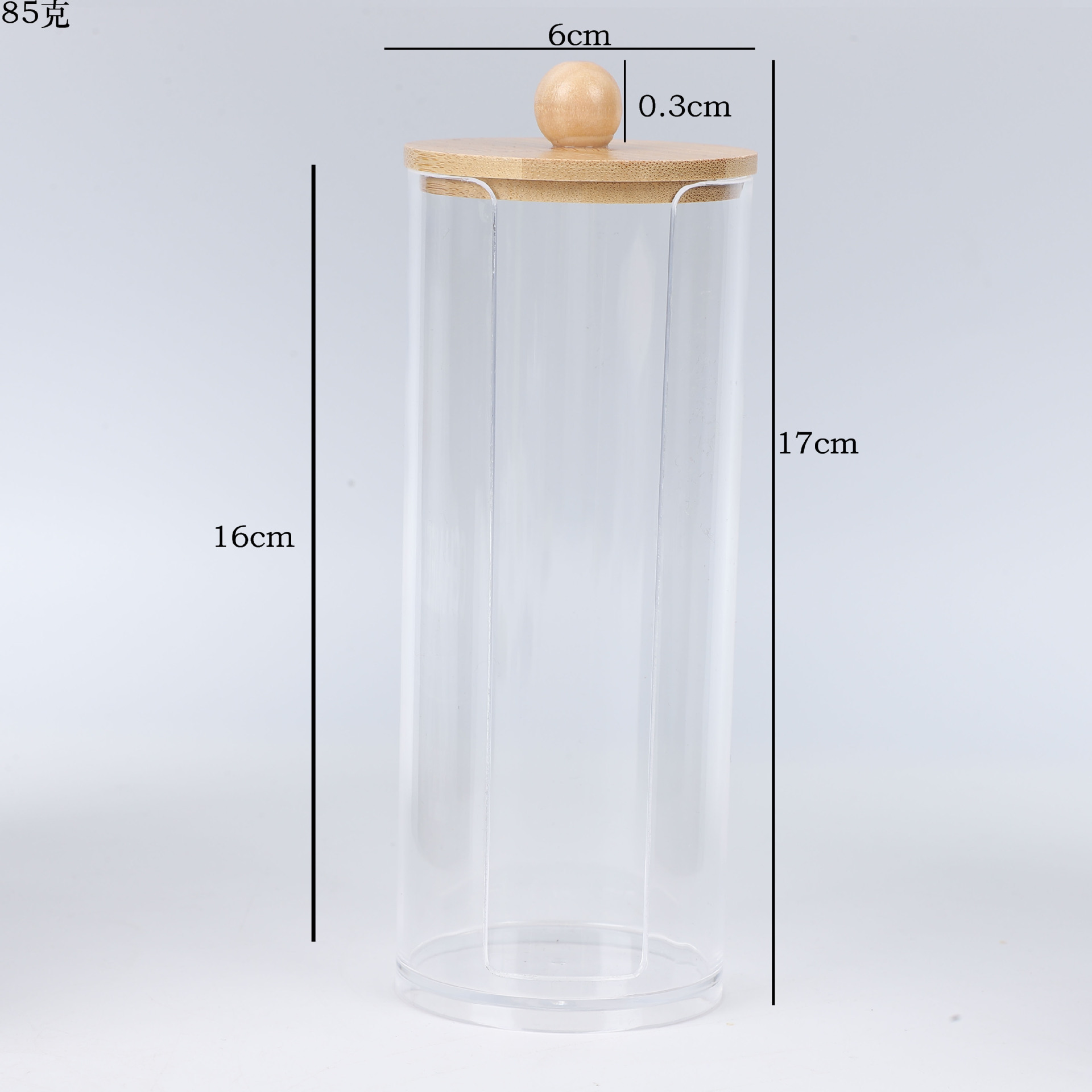 跨境竹盖棉签盒亚克力卸妆棉收纳盒组合装容器棉球牙线圆盒