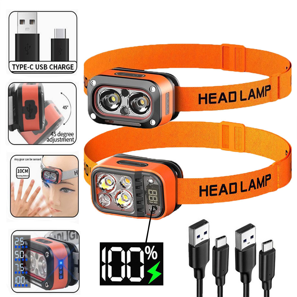 新型type-c充電感応ヘッドライトled夜釣り携帯型強光夜走高級屋外ヘッドライト