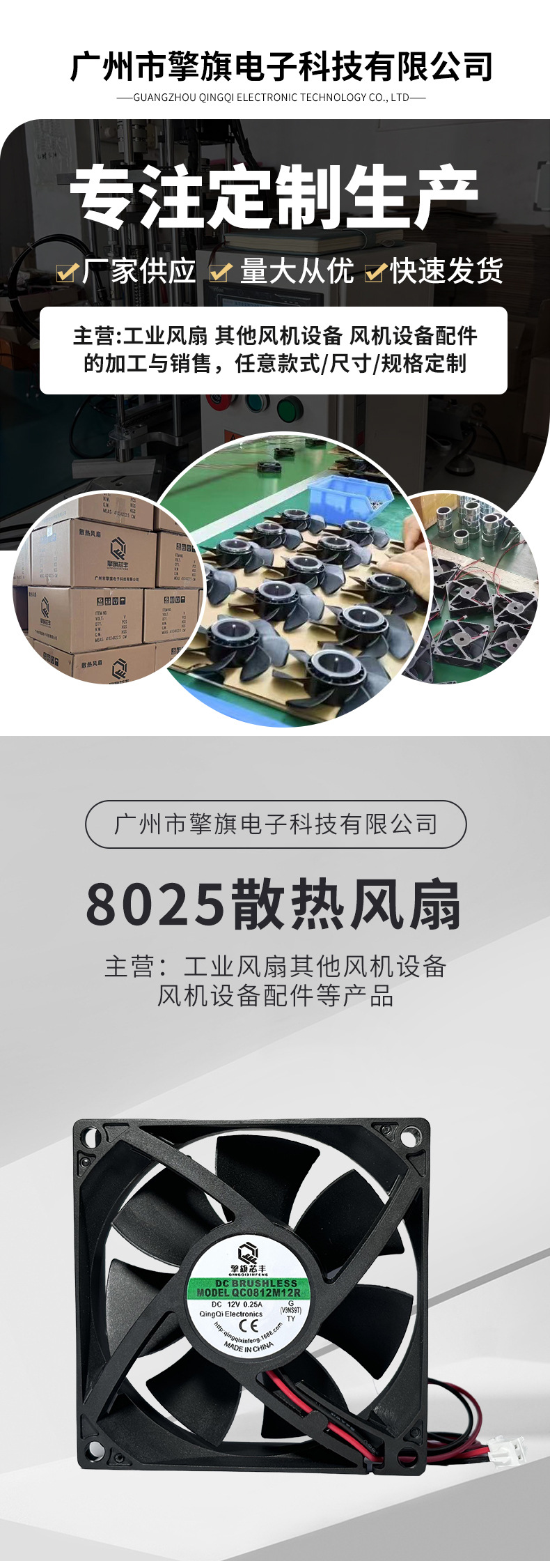 8025直流放熱ファン12V大風量ファン乾燥機温風機ファンメーカー卸売り