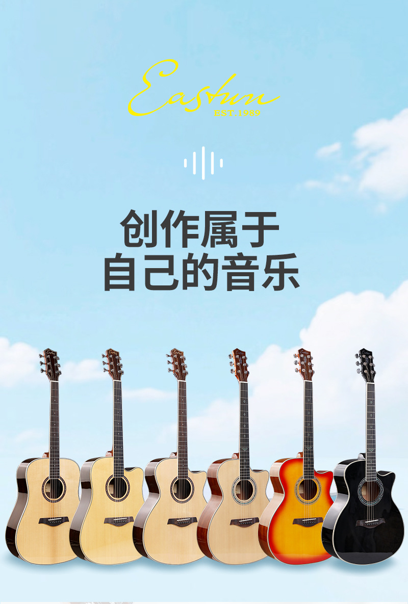 メーカー直販イーストン34インチ36インチ40インチ41インチ雲杉桃花芯面単新民謡単板ギター