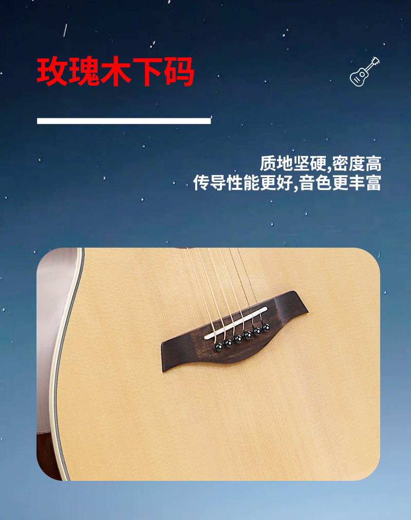 メーカー直販高級41寸雲杉バラ木雲杉桃花芯亮達リオブランド単板ギター