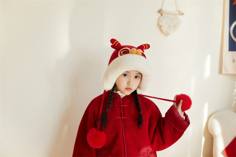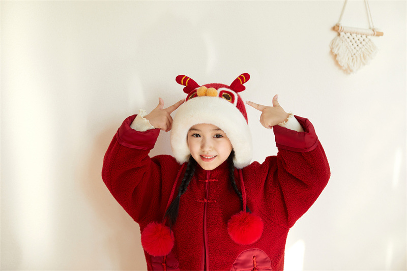 子供の帽子冬の蛇口の帽子は新年の本命年の新年の女の子の耳の帽子の男の子のぬいぐるみの保温帽子を祝います。
