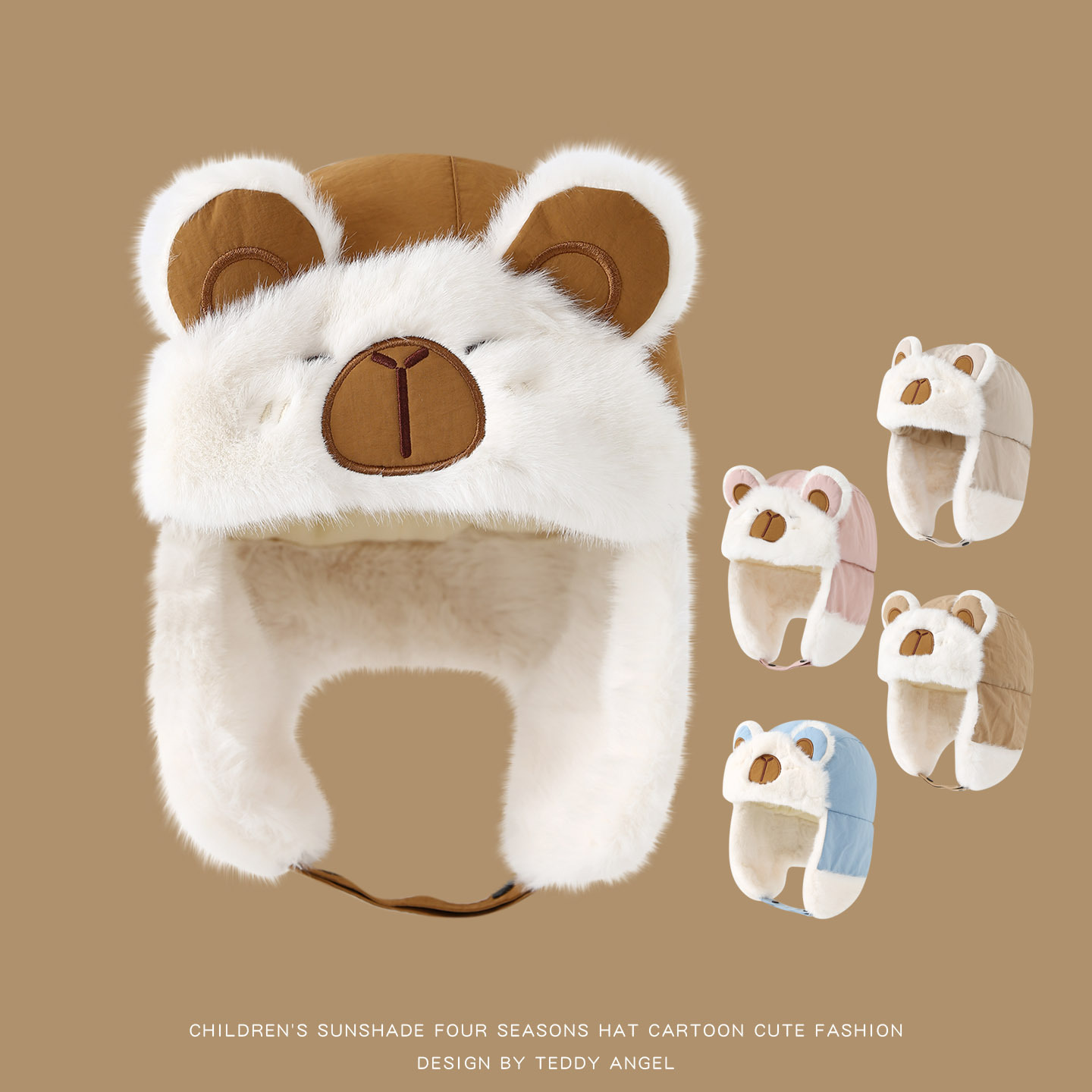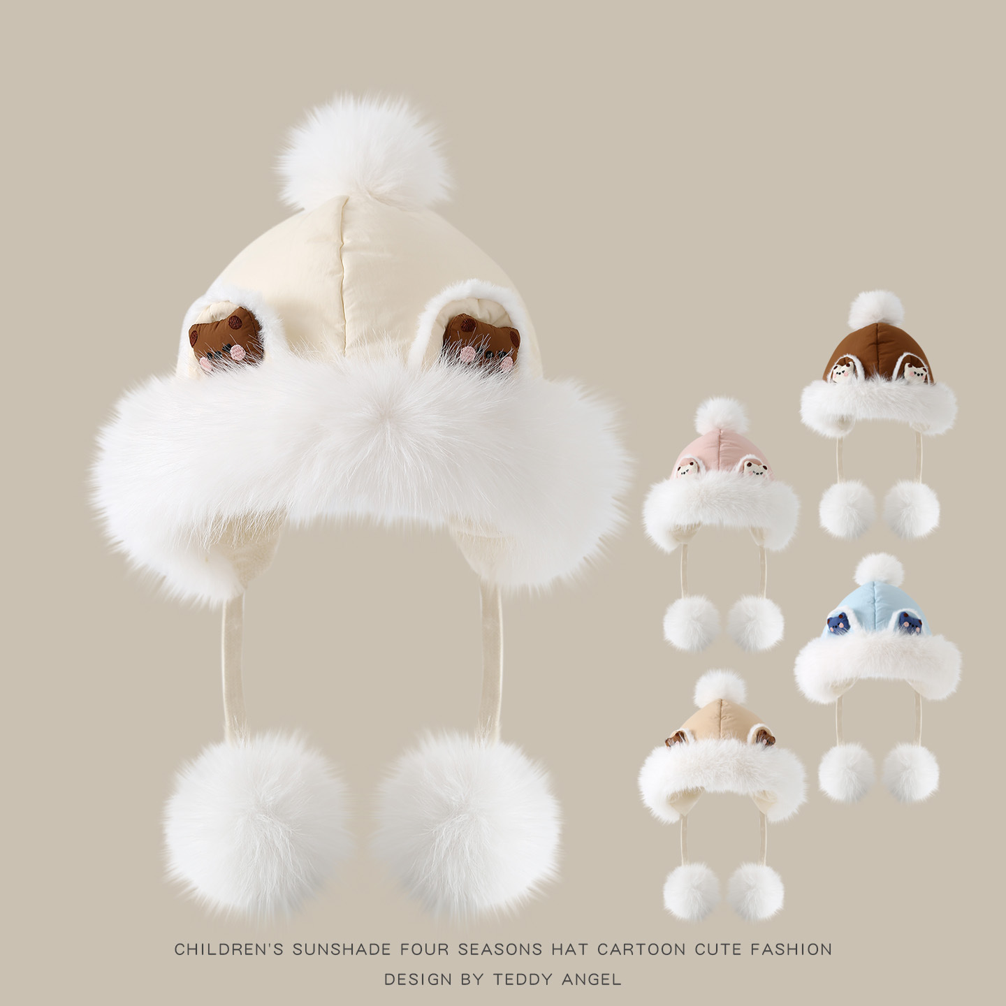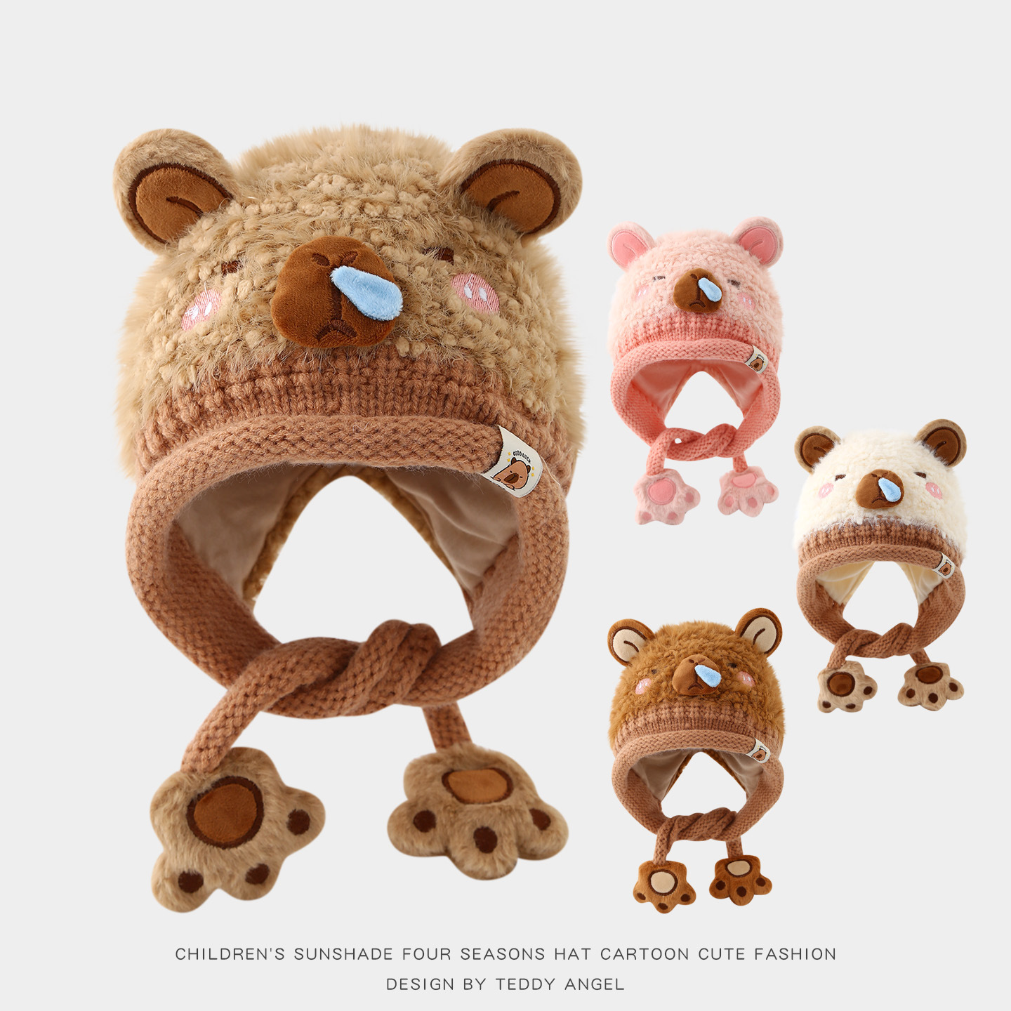 卡皮巴拉鼻涕儿童超可爱卡通动物毛绒帽男女童宝宝保暖防寒护耳