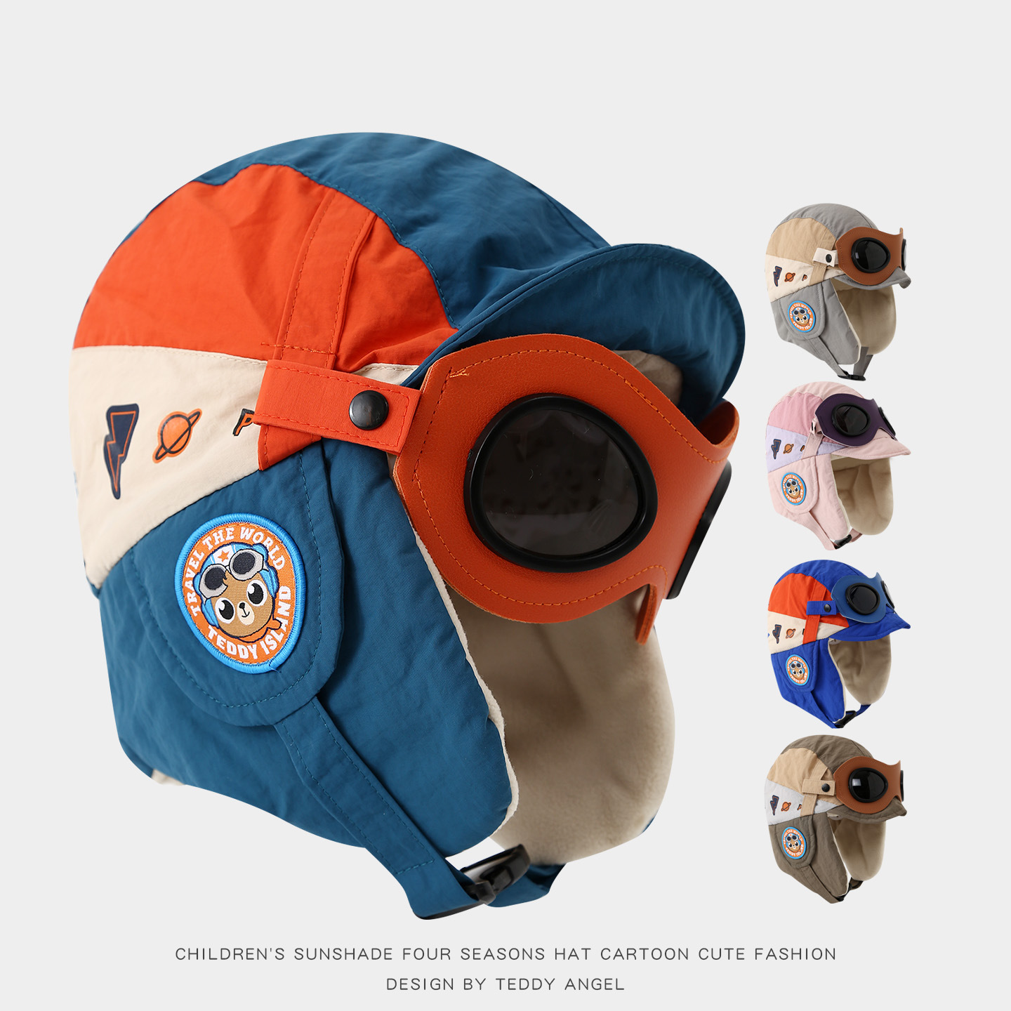 子供用航空機パイロット帽子 冬用 かわいい 子供らしい漫画風 幼稚園 防風 保温 ハロータイプ 大きな子供用 親子用