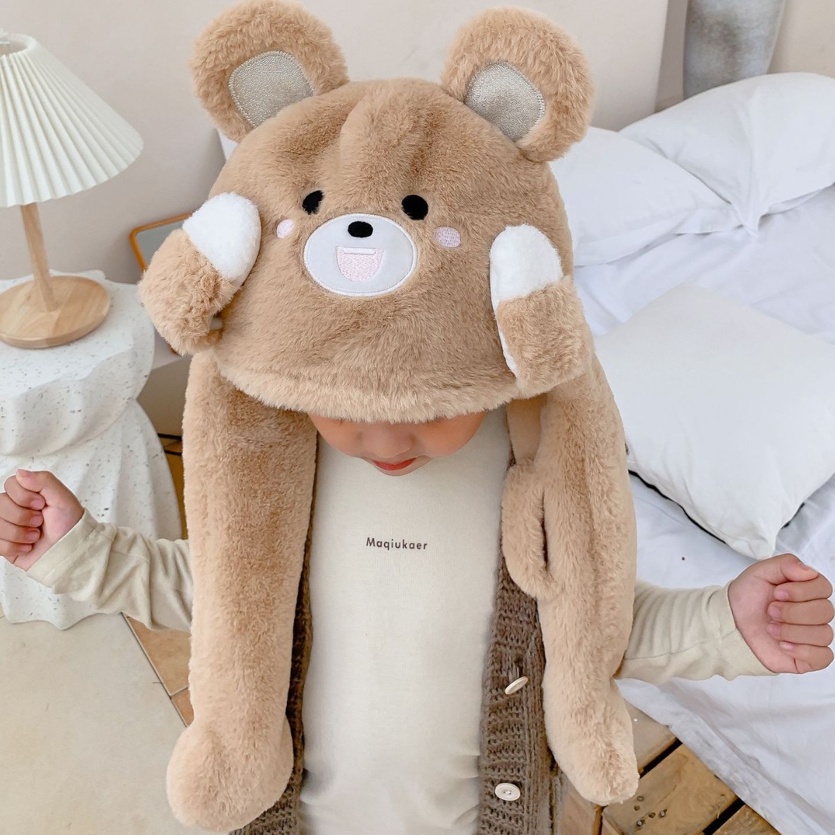子供の熊は耳を動かして帽子と言います。子供の帽子は首を囲みます。