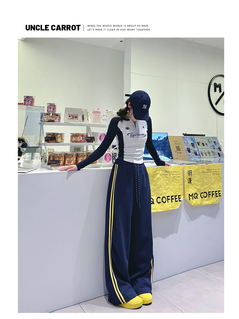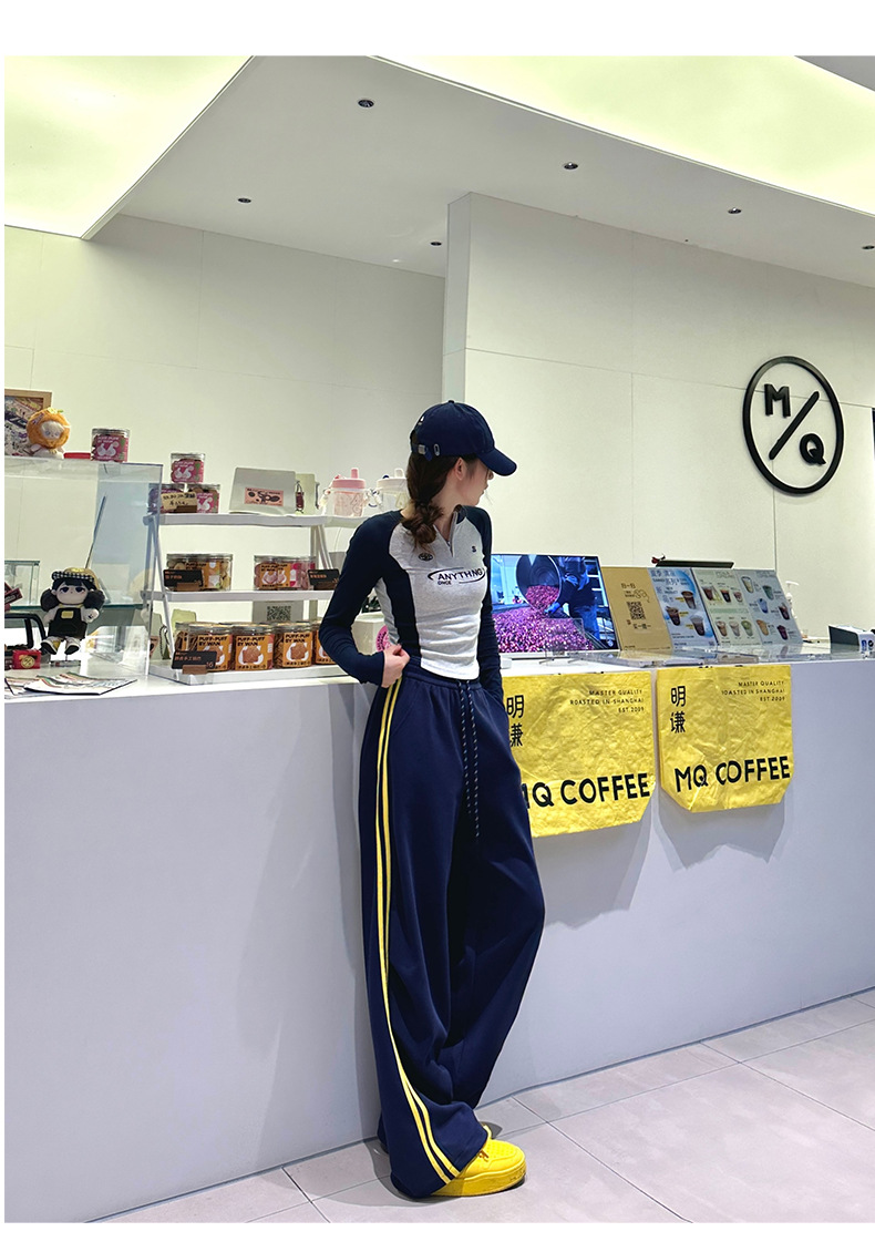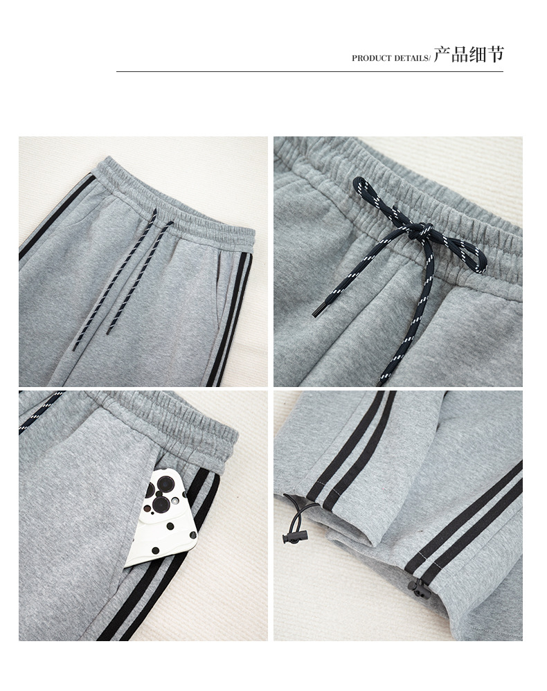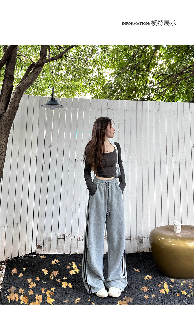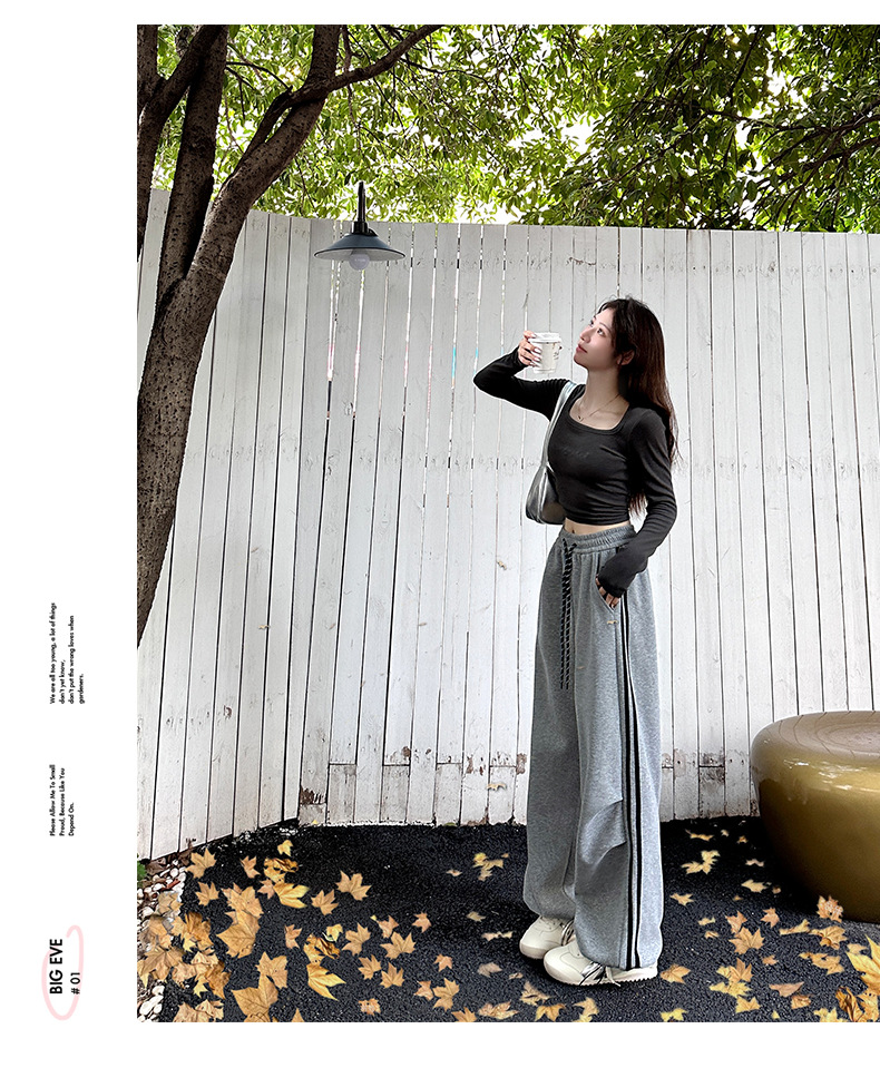 2025年秋新作デザイン、ダブルストライプのアメリカンハイストリートスタイルのレディーススポーツパンツ、ドローストリング付きの裾が絞れるカジュアルスウェットパンツ