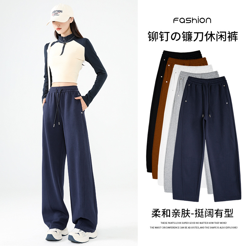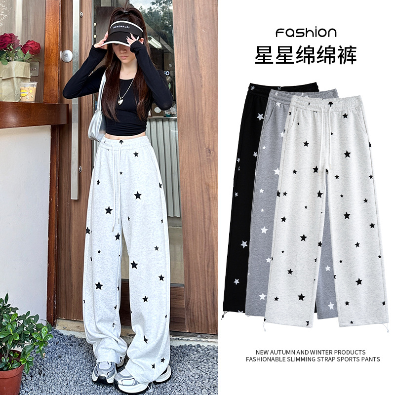 アメリカ五角星広脚ズボン女性秋冬新作高腰長ズボンカジュアルストレートズボンゆったり束足運動衛ズボン