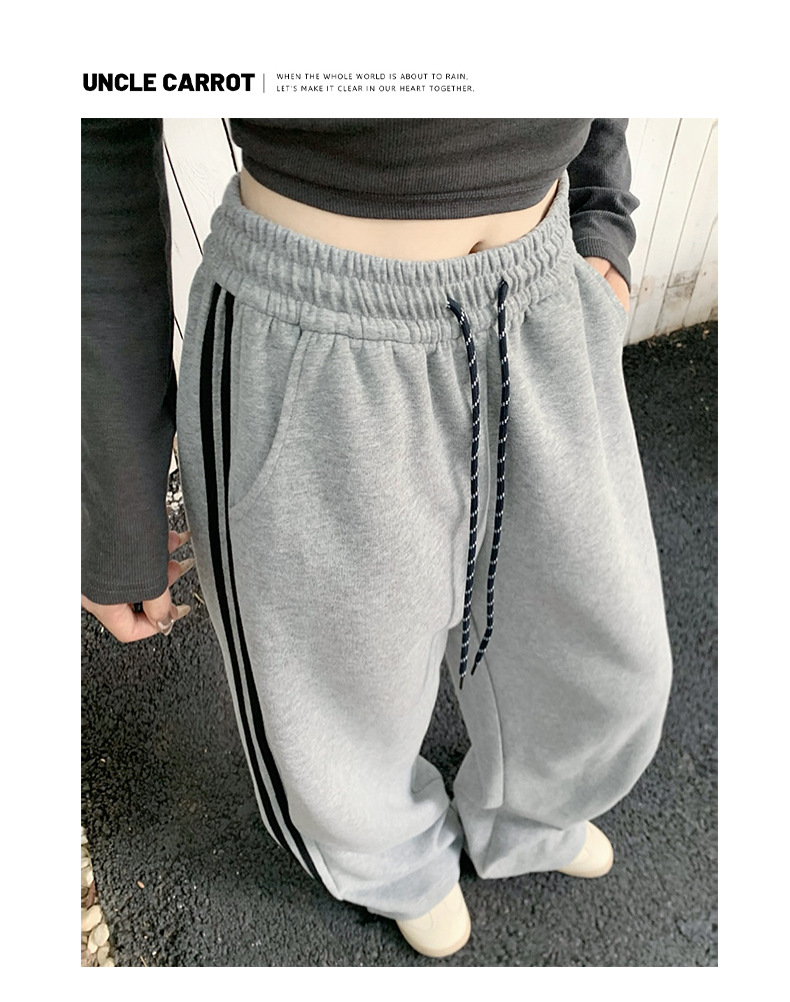 萝卜叔灰色作業ズボン レディース 春2026新作 カジュアルパンツ ゆったり裏起毛ワイドレッグスポーツパンツ 女性用