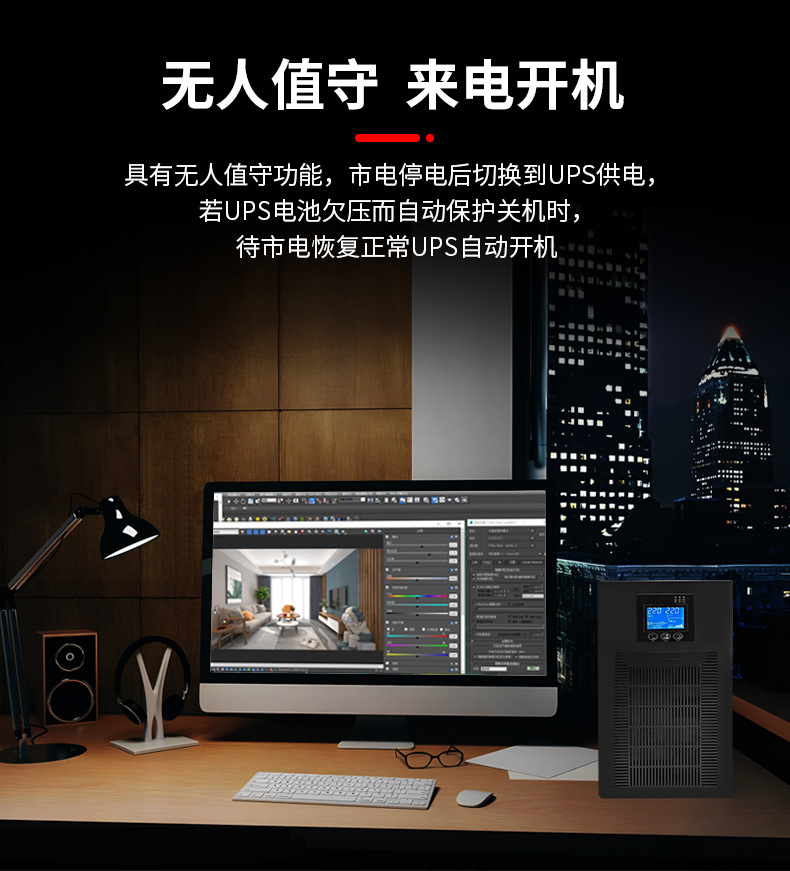 山埔定制机架式ups不间断电源6KVA工业续航大功率ups不间断电源