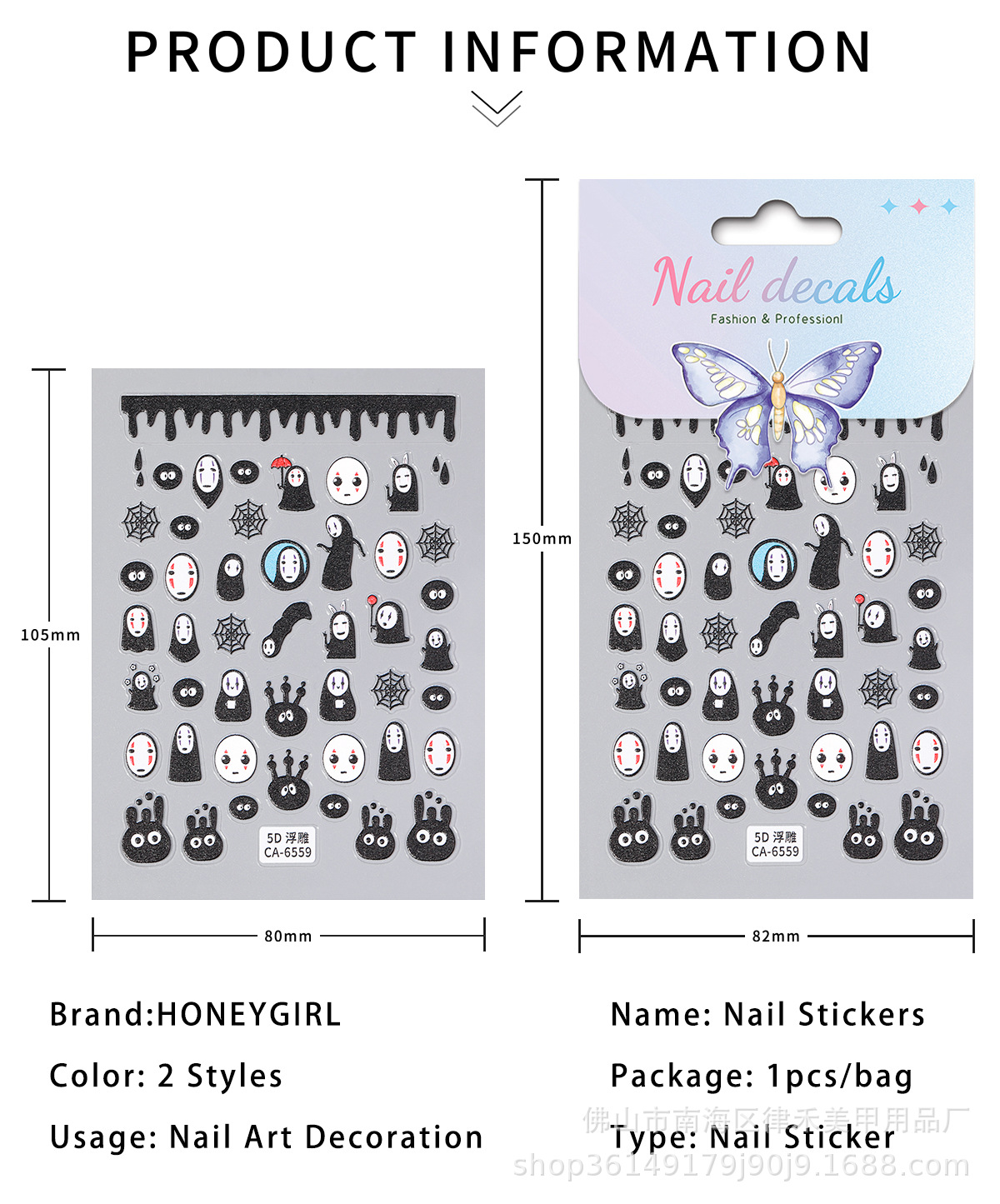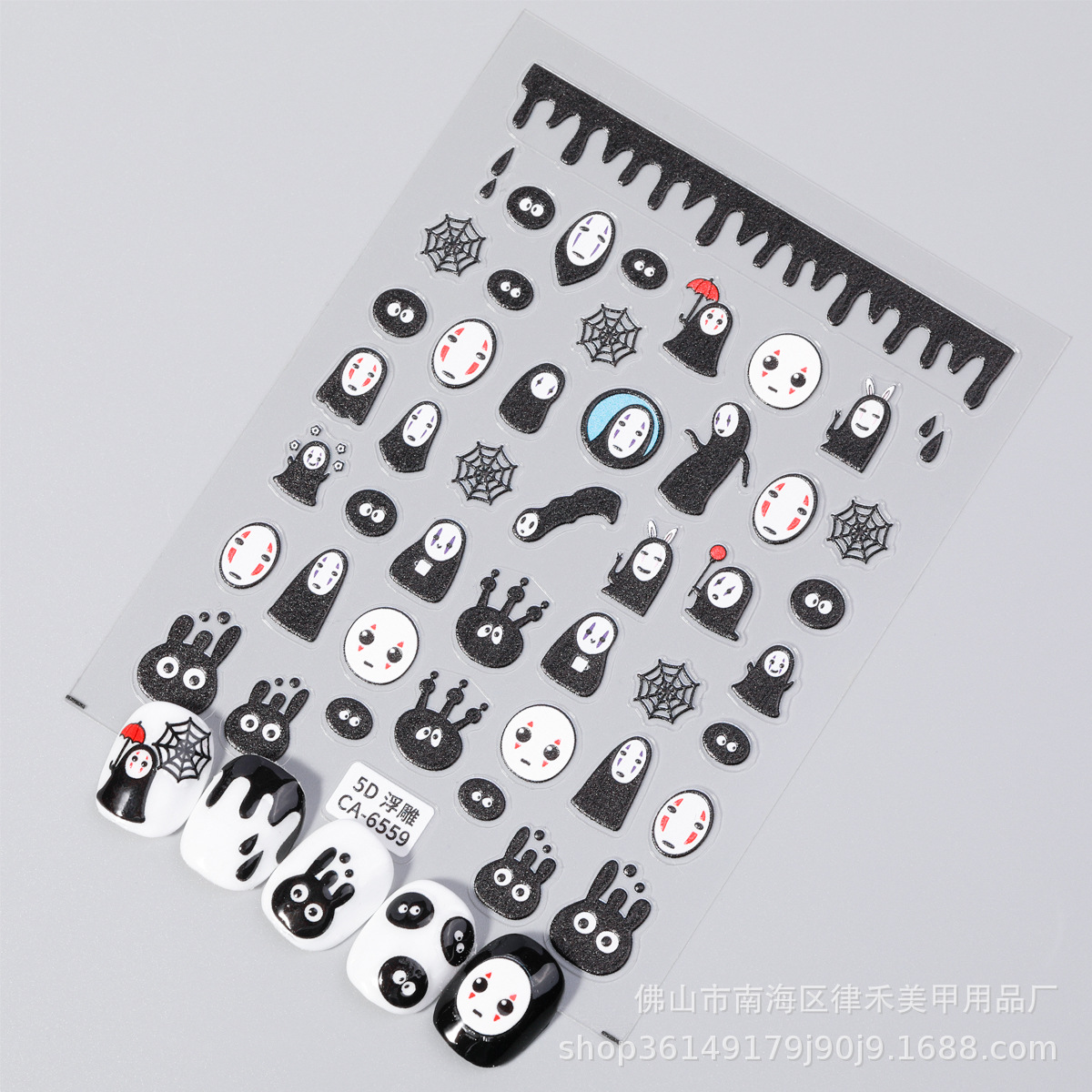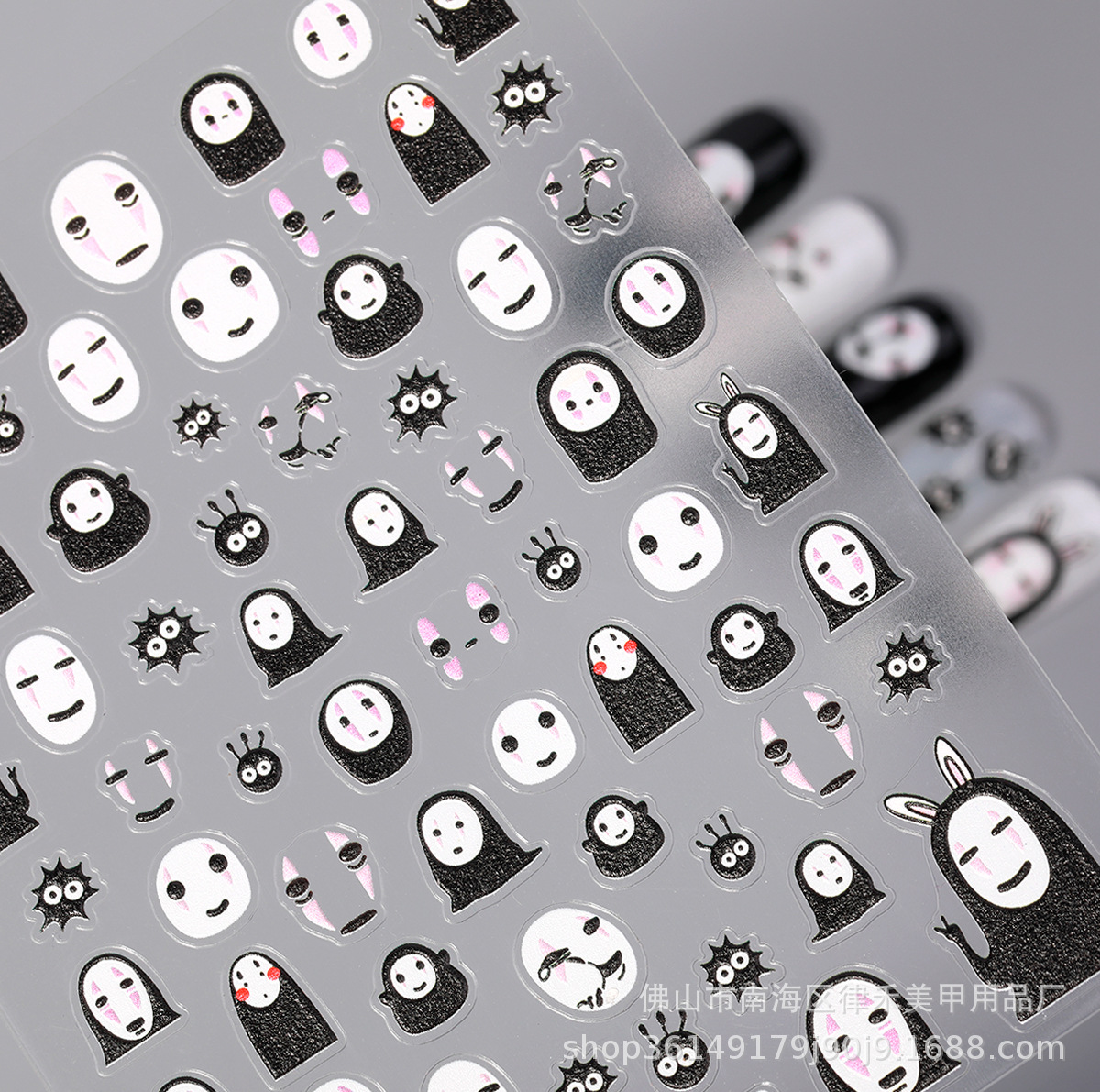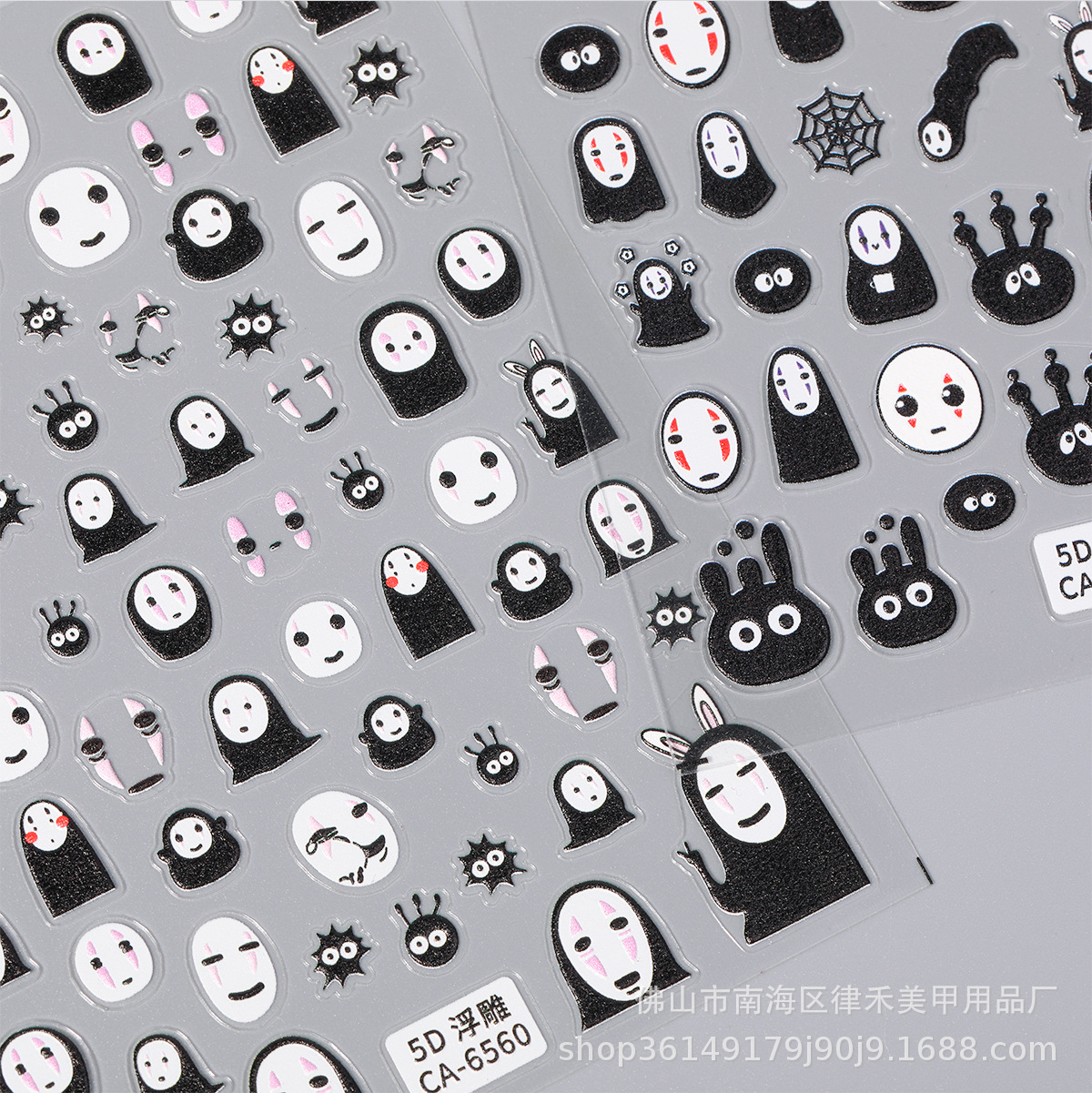 日系5Dレリーフ立体白黒アニメ顔なし男性ネイルシールかわいい笑顔クモアニメネイルシール