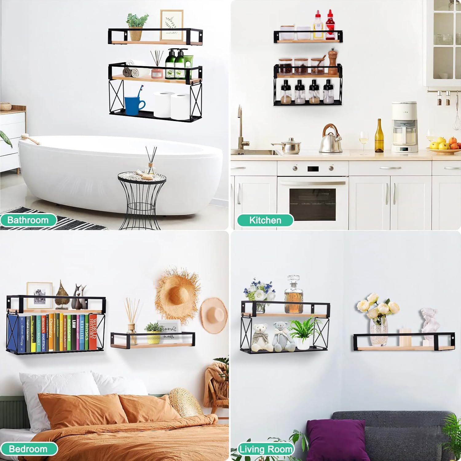 国境を越えた壁の棚の浴室の壁掛け式の収納吊り棚の鉄芸の貯蔵かごの浮動の仕切り板の装飾棚