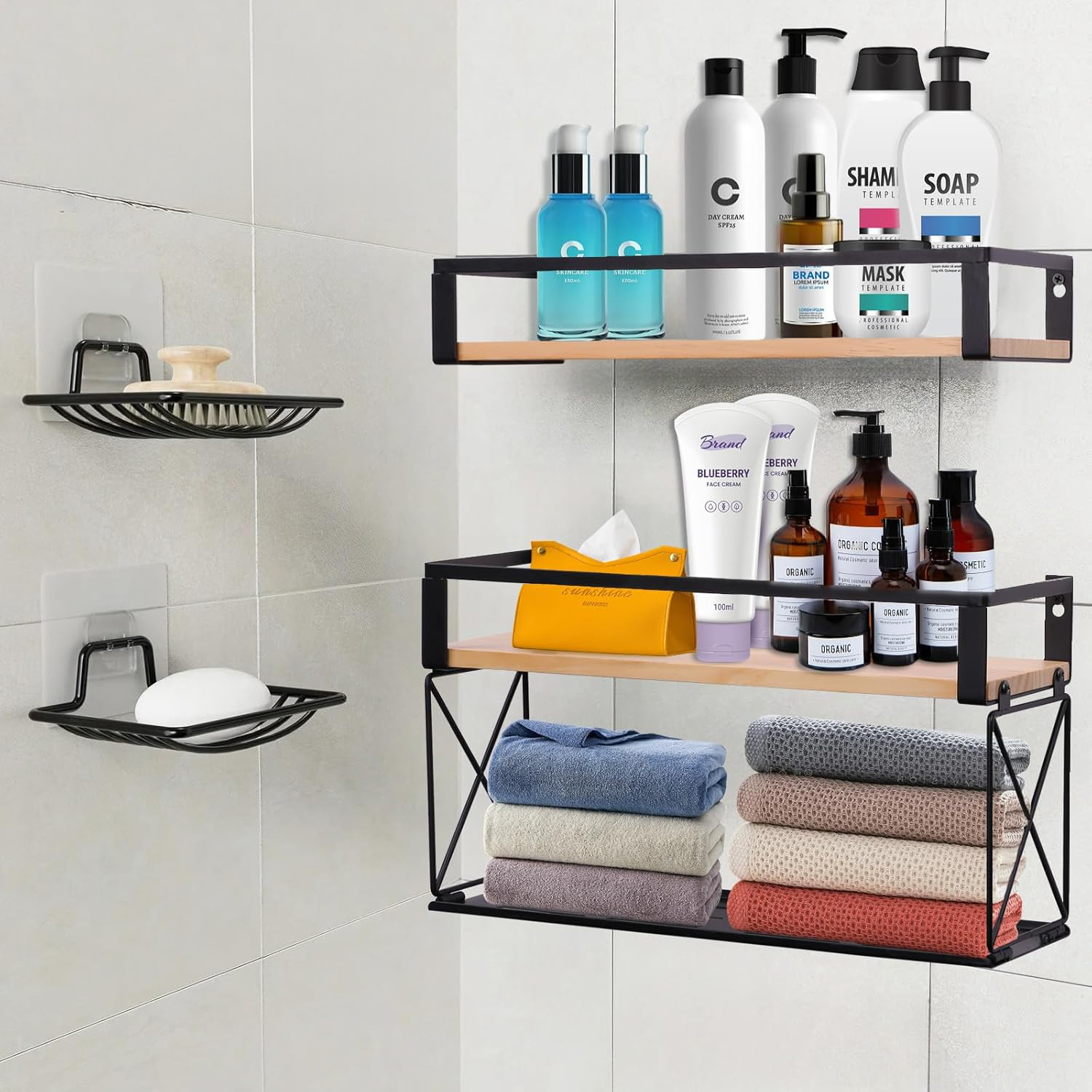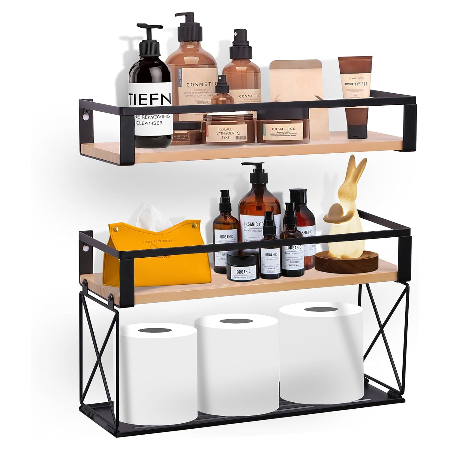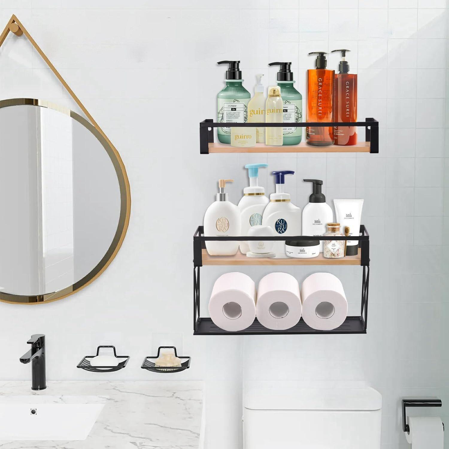 クロスボーダー壁懸濁物棚浴室タオル付き二重収納棚キッチンリビング壁掛け式装飾棚