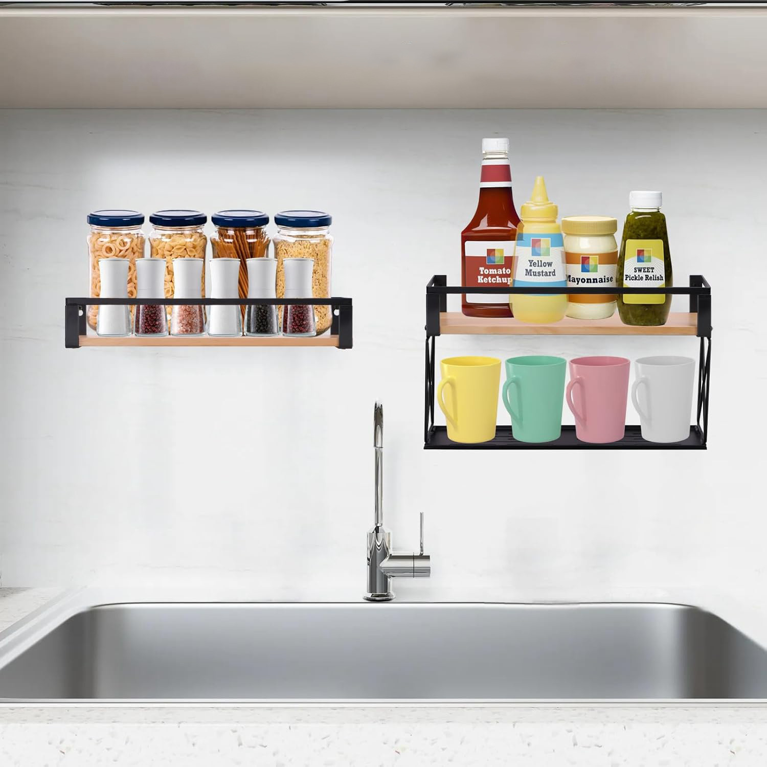 鉄芸木製懸濁物棚浴室タオル付き化粧品収納棚キッチン食器皿整理棚