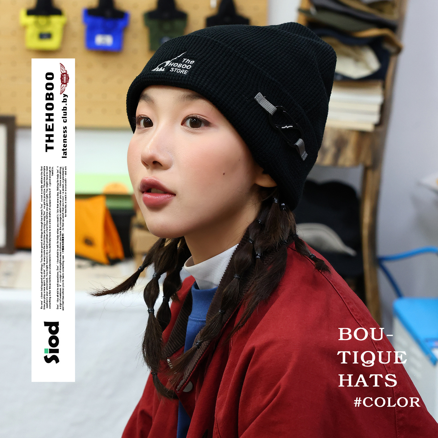 [THE HOBOO] 原创机能刺绣针织帽女华夫格秋冬保暖毛线帽男冷帽子