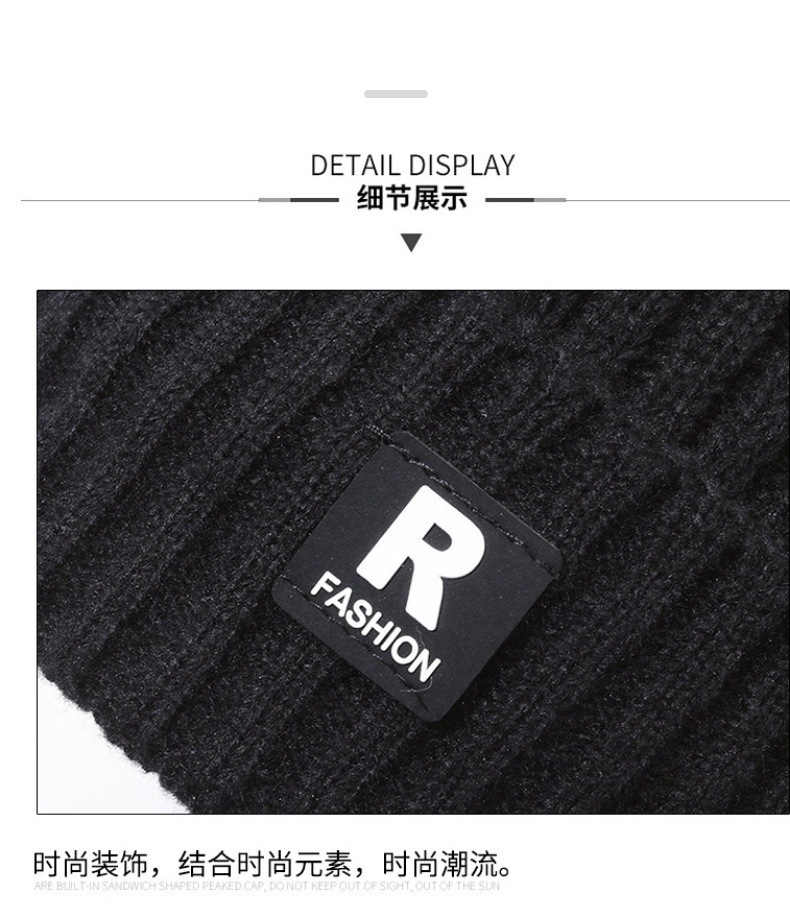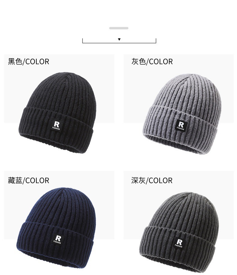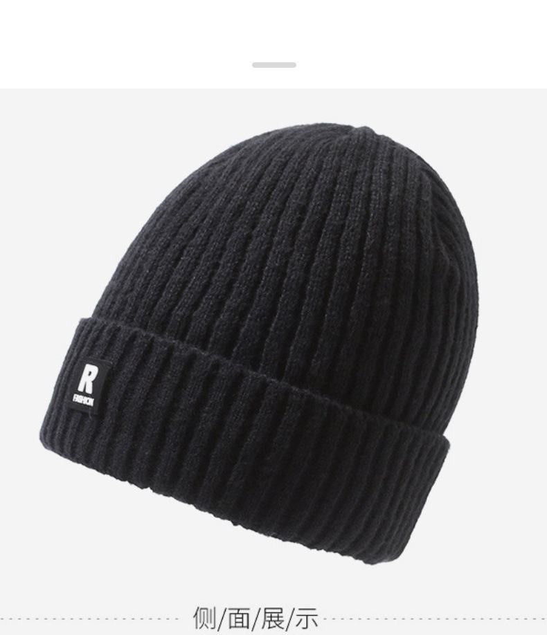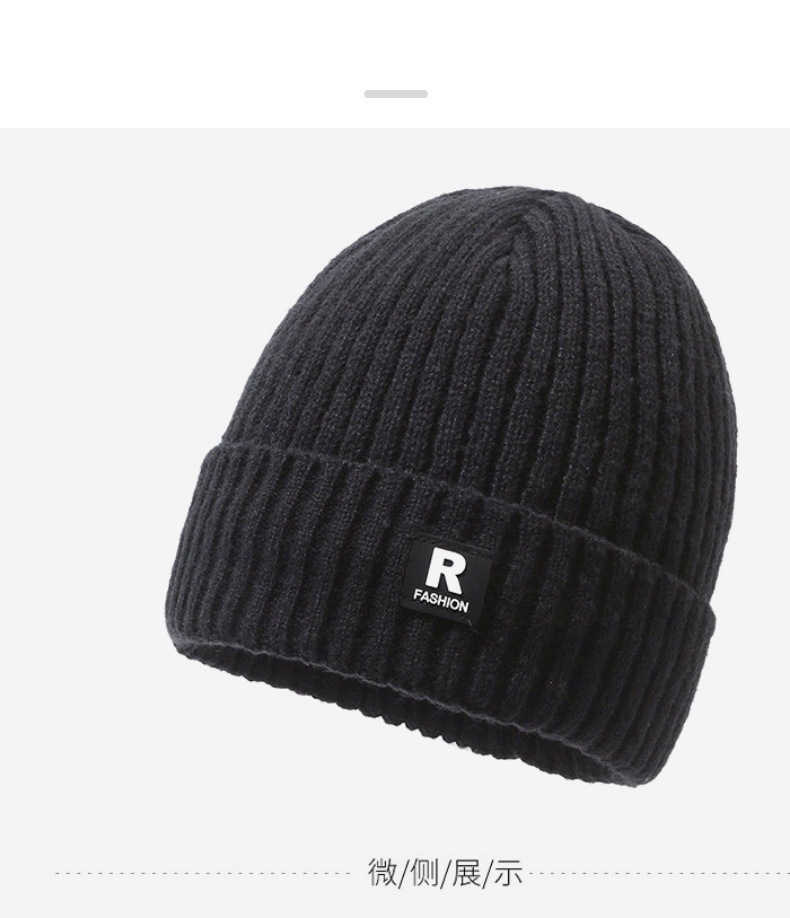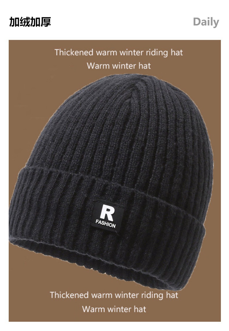帽子の男性の冬のアルファベットのRマークのニットの帽子の屋外の騎乗の防風の防寒とベルベットの厚い毛糸の帽子の男性