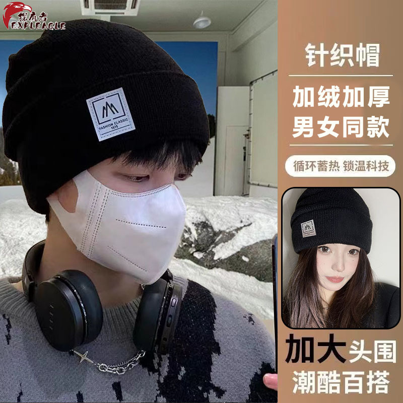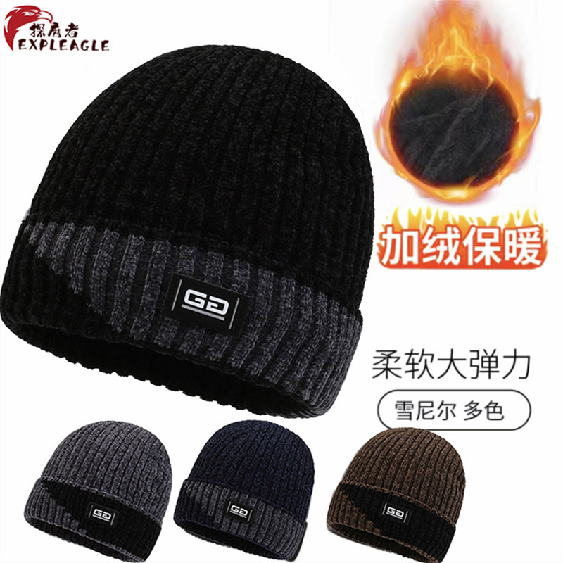 帽子男の冬はシンプルで、ニット帽とベルベットの厚い毛糸帽の防寒保温屋外でニット帽に乗る