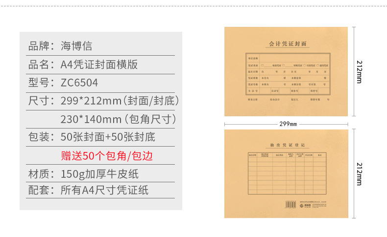 A4横パネル 299*212 120g 伝票カバー 50セット