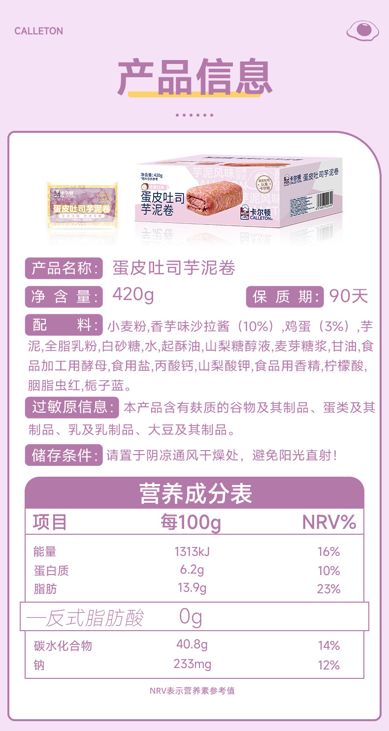 カールトン卵皮トースト芋泥巻きパン朝食栄養健康ケーキお菓子カジュアルスナック