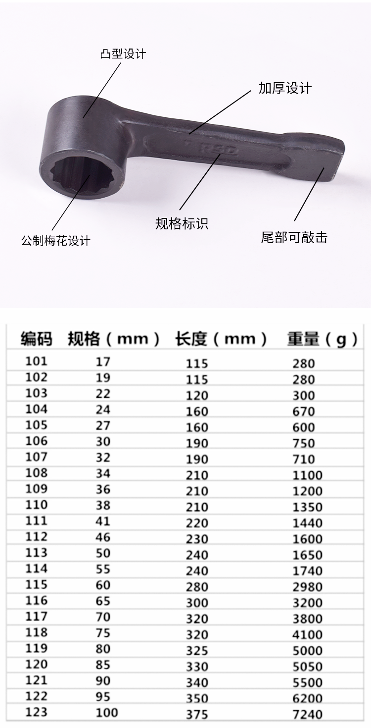 凸型パイプの梅の花のレンチは特殊な梅の花を叩いて重厚な梅のレンチの工具を厚くしてまっすぐな柄の単頭を打ちます。