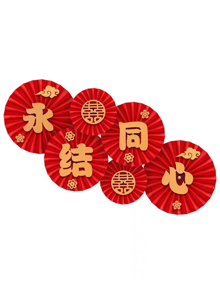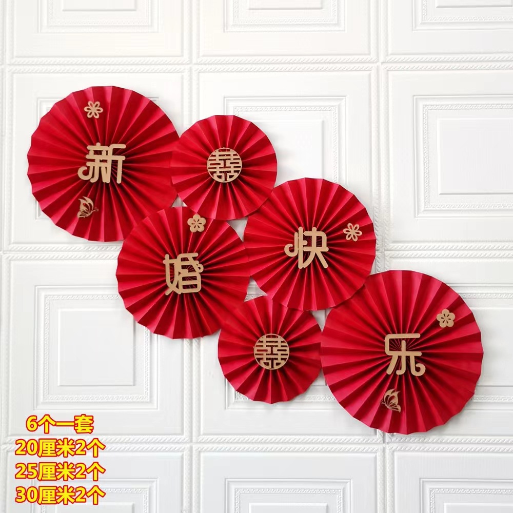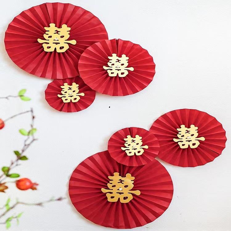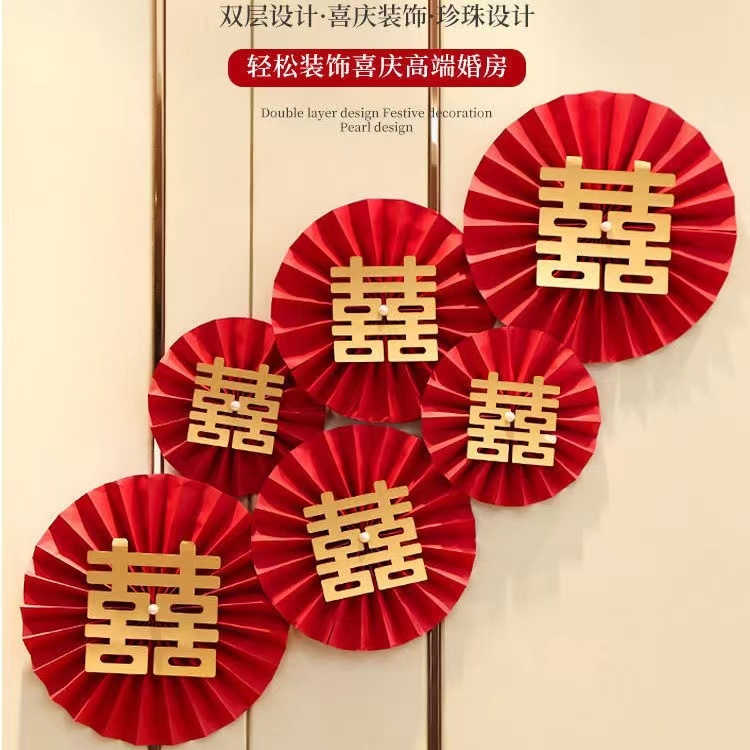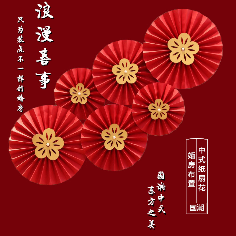 結婚部屋の配置紙扇花装飾創意結婚部屋の背景壁喜字折り紙扇花個性装飾結婚用品